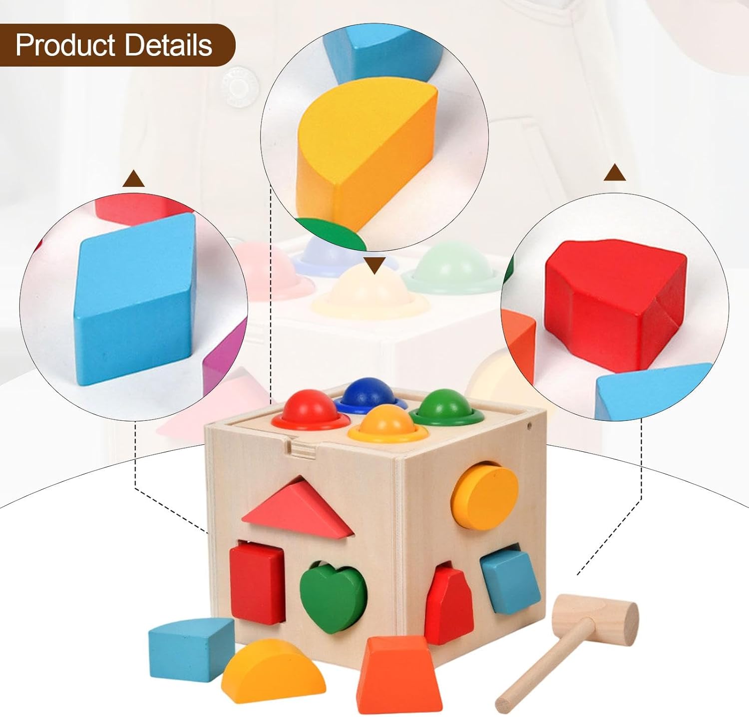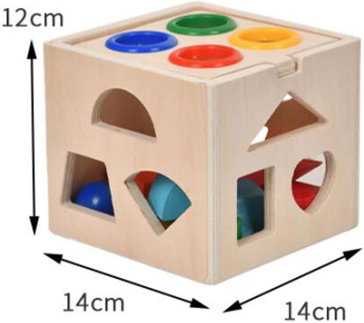【Migliora le capacità motorie fini】: questa scatola di legno è progettata per migliorare la coordinazione occhio-mano e le capacità motorie fini del tuo bambino attraverso un gioco coinvolgente 【Giocattolo educativo e di sviluppo】: Questo set di blocchi per il riconoscimento e l'abbinamento delle forme è progettato per lo sviluppo del cervello e per migliorare le capacità cognitive dei bambini piccoli. Incoraggia l'apprendimento pratico, promuovendo la crescita sia mentale che fisica. La scatola intelligente presenta un design a ribalta che impedisce la perdita di pezzi e consente di risparmiare spazio, facilitando la conservazione e l'organizzazione. 【Materiale in legno】: Realizzato in legno di alta qualità, questo classico giocattolo a cubo per l'ordinamento delle forme è perfetto per le manine dei più piccoli. I blocchi di grandi dimensioni sono facili da afferrare per i più piccoli, garantendo un'esperienza di gioco confortevole. 14 cm x 14 cm x 12 cm / 5,51 pollici x 5,51 pollici x 4,72 pollici 【Allenamento sensoriale completo】: questo giocattolo a cubo Shape Sorter non solo sviluppo visivo, ma migliora anche le capacità di esplorazione sensoriale nei giovani studenti attraverso il gioco interattivo con i suoi colori vivaci e le sue forme varie. 【Molteplici modalità di gioco】: giocattolo in legno offre varie attività coinvolgenti come l'abbinamento delle forme, dove i bambini possono gareggiare per adattare i blocchi negli slot corretti per un divertimento aggiunto