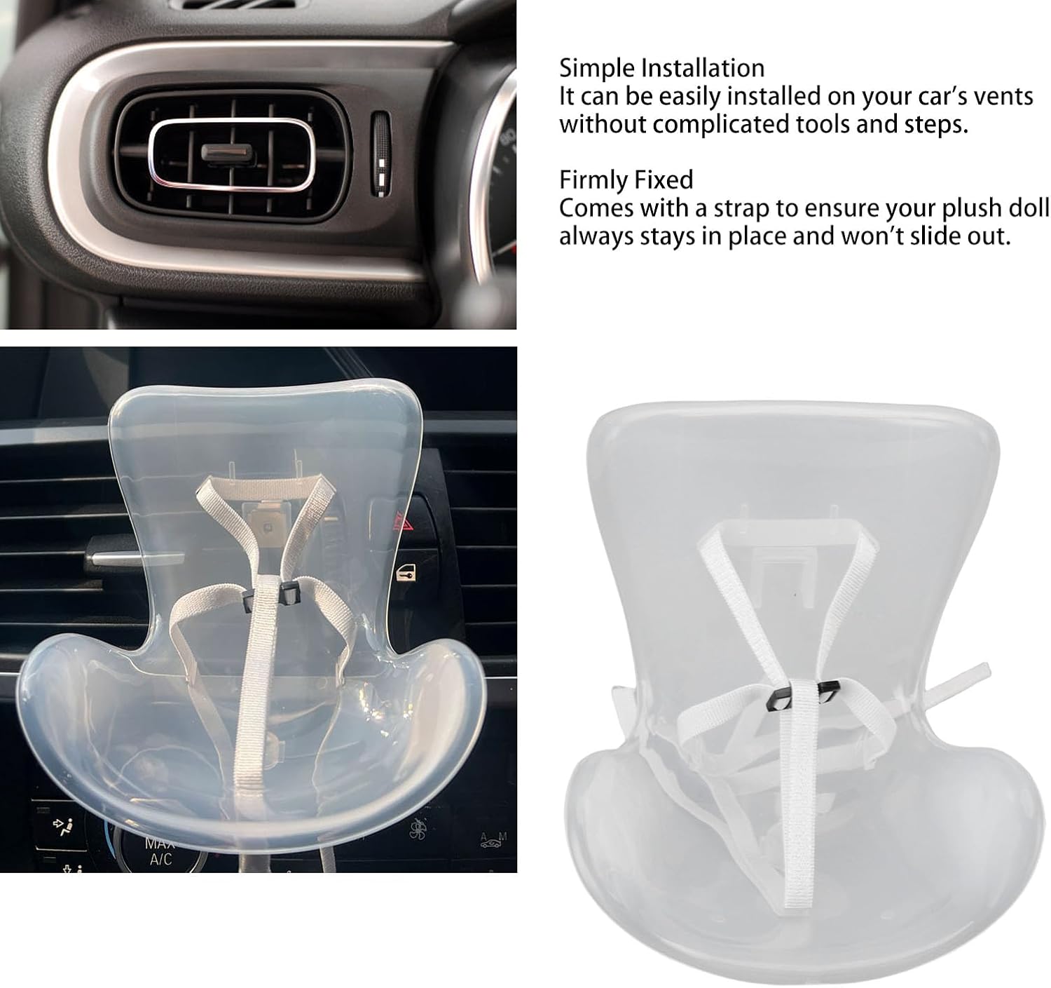 Easy Installation: il seggiolino per auto delle bambole è progettato per l'installazione senza sforzo sulla presa d'aria della tua auto, consentendo di configurarlo in pochi secondi. Si prega di notare che la staffa del sedile e le bambole non sono incluse. Cintura: la nostra sedia in auto bambole è dotata di una cintura, assicurando che i tuoi peluche rimangono saldamente in posizione durante il viaggio. Questa funzione impedisce alle tue bambole di scivolare fuori, fornendo tranquillità mentre guidi. Materiale: costruito in plastica premium, questo sedile della bambola è robusto e affidabile, in grado di resistere all'uso quotidiano senza odori spiacevoli. Garantisce un ambiente sicuro per i tuoi cari giocattoli, rendendolo un'ottima aggiunta agli interni della tua auto. Compatto: con le sue dimensioni ridotte, la sedia della bambola occupa spazio minimo, rendendolo ideale per la decorazione dell'auto o miglioramento dell'estetica della camera e della scrivania. Il suo design compatto consente di adattarsi perfettamente a qualsiasi ambiente. Sedili comodi: questo delizioso sedile offre un luogo confortevole per le tue bambole, rendendo i viaggi con i tuoi amati giocattoli lussuosi un'esperienza piacevole. Non serve solo come accessorio funzionale, ma aggiunge anche un tocco di divertimento alla tua auto e decorazioni per la camera.