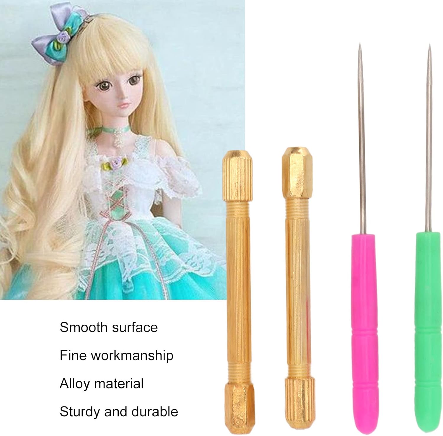 [MATERIALE DI ALTA QUALITÀ] Realizzati in metallo e lega con componenti in plastica, questi strumenti sono di alta qualità per tutte le esigenze di creazione dei capelli delle bambole. [SET CONVENIENTE] Questo set comprende 2 punzoni, 2 manici in lega e 10 aghi per radici di capelli di diverse dimensioni, offrendo praticità e versatilità. [FUNZIONAMENTO SEMPLICE] Il design liscio e ben realizzato dello strumento rende molto facile radicare i capelli della bambola anche per i principianti o gli amanti dell'artigianato. [APPLICAZIONE VERSATILE] Adatti per il rooting, lo styling e il fai--te dei capelli delle bambole, questi strumenti ti aiutano a ottenere acconciature bambola affascinanti e squisite. [DURATA DI LUNGA DURATA] Caratterizzati una struttura in metallo, questi strumenti sono robusti e durevoli, garantendo che possano resistere a un uso frequente senza usurarsi.