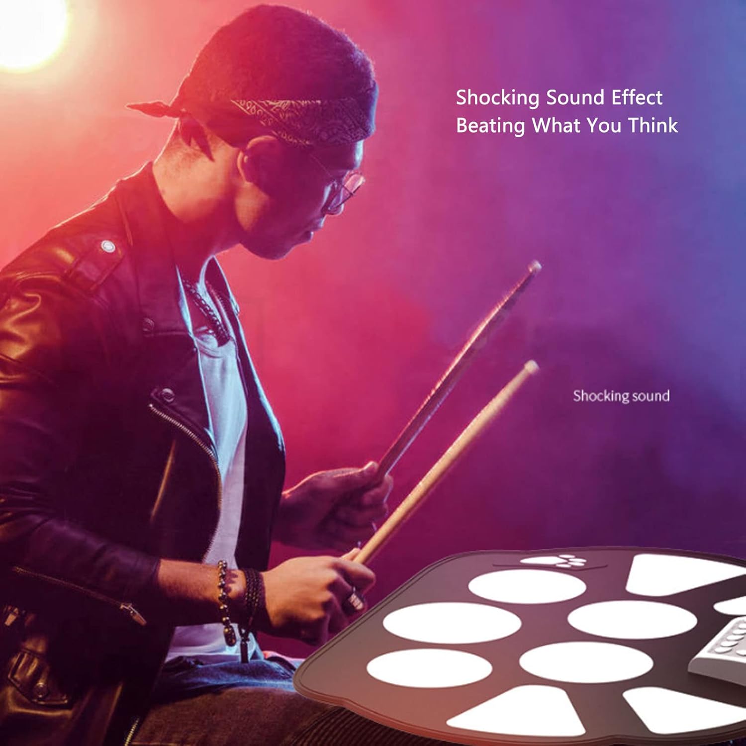 [DRUMMING TRASFORMATIVO] Migliora le tue abilità di batterista con 9 pad reattivi e 12 brani demo per un'esperienza di gioco coinvolgente. Ideale per gli appassionati di batteria. [CONTROLLI INTUITIVI] Segui le semplici istruzioni facile configurazione e funzionamento. Prova a suonare la batteria senza problemi con questa batteria elettronica. [SCELTE DI COLORI ELEGANTI] Scegli tra le opzioni bianco o per adattarle al tuo stile. Un giovane musicista e un amante della batteria. [COMODE FONTI DI ALIMENTAZIONE] Alimenta con batterie USB 5V o 2 batterie AAA da 1,5 V (non incluse) per sessioni di batteria continue. Rimani carico mentre sei in movimento! [PACCHETTO COMPLETO] Include tutto il necessario per un divertimento immediato con la batteria. Procurati un pad avvolgibile, un cavo di ricarica, pedali, bacchette per batteria e un manuale utente.