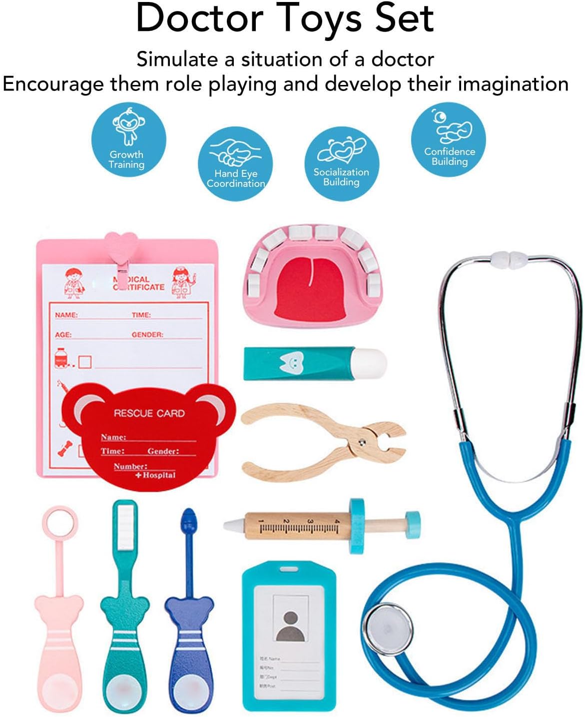 GIOCO IMMAGINATIVO: questo kit medico per bambini offre ai bambini una piattaforma perfetta per liberare la loro creatività, incoraggiando il gioco di ruolo e lo sviluppo del loro potere immaginativo. MATERIALI DI QUALITÀ: Realizzato con legno e cartone di prima qualità, il set da gioco del medico soddisfa gli standard di sicurezza per i giocattoli per bambini, garantendo la sicurezza del tuo bambino. RICCHI ACCESSORI: dotato di una varietà di strumenti medici, questo kit di gioco migliora il divertimento e l'esperienza del gioco. GIOCATTOLO EDUCATIVO: non un divertente set da gioco, ma fornisce anche conoscenze di base ed etica alle giovani menti, favorendo la loro immaginazione e senso di responsabilità. INTERAZIONE FAMILIARE: i genitori possono partecipare ai giochi di ruolo come medici, rafforzando i legami genitore-figlio, promuovendo la comunicazione e condividendo tempo di qualità.