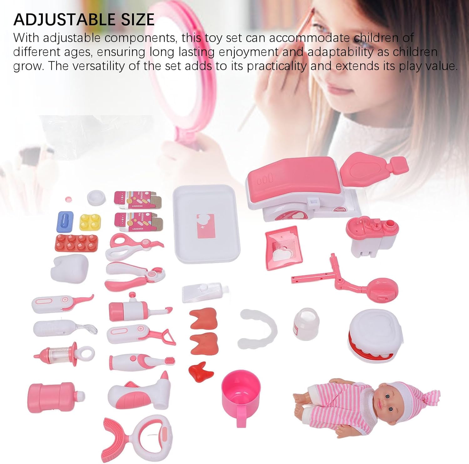 [Divertente ed educativo] Lascia che tuo figlio esplora il mondo dell'odontoiatria attraverso un gioco fantasioso, promuovendo la creatività e le capacità di gioco di ruolo. [Sicuro e resistente] Realizzato in plastica di alta qualità, questo set di giocattoli garantisce sicurezza e durata per il gioco senza preoccupazioni. [Parti regolabili versatili] ospitare i bambini di tutte le età con componenti regolabili, garantendo il divertimento e la praticità di lunga durata man mano che crescono. [Imballaggio delizioso] Questo set di giocattoli è ben confezionato e per i bambini, incoraggiando la creatività, l'apprendimento e il divertimento che gioca a ruolo. [Esperienza di gioco migliorata] Con luci e musica, questo set di giocattoli offre un'esperienza di gioco dinamica e interattiva che aiuta a sviluppare sensoriali e abilità di coordinamento.