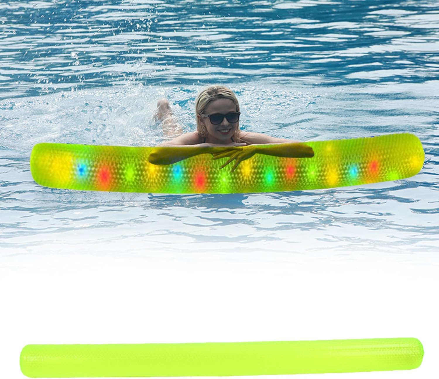 Uso universale per tutte le età: misurazione di 165x17x17 cm, questo versatile aiuto al nuoto è adatto sia a bambini che ad adulti, offrendo ulteriore sicurezza e divertimento migliorando le capacità di nuoto e la fiducia nell'acqua. Materiale in PVC di qualità: realizzato in robusto PVC, questo bastoncino di piscina gonfiabile è progettato per essere a prova di perdita e di lunga durata, rendendolo una scelta e affidabile sia per i principianti che per i professionisti. Luci a LED costruite: dotato di luci a LED, questo bastone da piscina migliora la sicurezza durante il nuoto notturno migliorando la visibilità, permettendoti di goderti l'acqua con una maggiore tranquillità. Portatile e gonfiabile: con il suo design leggero e gonfiabile, questo gioco d'acqua fa esplodere la pasta è facile da trasportare e adatto per l'uso in spiagge, piscine o qualsiasi attività a base d'acqua, garantendo comodità ovunque tu vada. Design cavo per galleggiamento: la struttura cavata di questo bastone fluttuante gonfiabile fornisce un'eccellente galleggiabilità, aiutando i nuotatori a mantenere la corretta postura e migliorare facilmente la loro tecnica di nuoto.