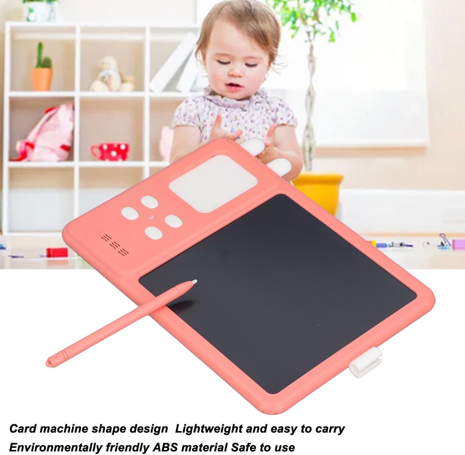GIOCATTOLI PER L'APPRENDIMENTO DEI BAMBINI: Con lo stilo LCD, i bambini possono facilmente imparare a scrivere, scarabocchiare e disegnare, stimolando la creatività e l'immaginazione. SCHERMO LCD AD ALTA DEFINIZIONE: offre un'immagine reattiva, chiara e visibile, fornendo una deliziosa esperienza di disegno con la possibilità di ripetere gli scarabocchi. Sottolinea inoltre le caratteristiche di protezione ambientale e risparmio energetico. DESIGN SEMPLICE E PORTATILE: Con il suo design a forma di macchina per carte, questo dispositivo leggero è facile da trasportare e ti offre l'opportunità di goderti il divertimento di disegnare sempre e ovunque. MATERIALE ABS: Realizzato in materiale ABS ecologico, il giocattolo per lavagna è sicuro da usare e non produce radiazioni, garantendo la crescita sana e il benessere dei bambini. GIOCHI INTERATTIVI PER L'APPRENDIMENTO PRECOCE: integrati in una varietà di modelli e giochi di doodle per aiutare i bambini a conoscere lettere, numeri, animali, ecc. e promuovere lo sviluppo intellettuale.