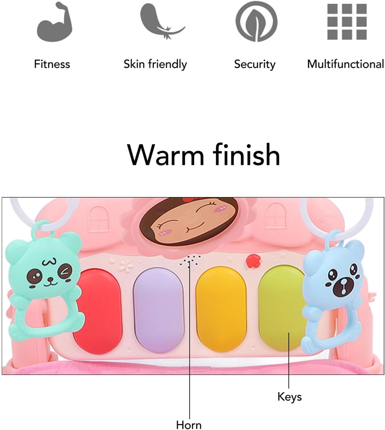 Materiale premium: il pianoforte a pedali per bambini è realizzato in plastica di alta qualità, un materiale sicuro e robusto. Questa struttura affidabile e robusta può garantire la sicurezza del tuo bambino, i genitori possono stare certi che tuo figlio può giocarci. Design unico: il supporto per fitness musicale per bambini è progettato esclusivamente per supportare la riproduzione del pianoforte a pedali del bambino, questo supporto non intrattiene, ma sviluppa anche il talento musicale e la coordinazione fisica del bambino. Morbido tappetino per gattonare: il morbido tappetino per attività del bambino offre al tuo bambino spazio di gioco confortevole, fornendo un'area di gioco accogliente e affinché il tuo bambino cresca felicemente divertendosi. ideale: il tappetino per attività musicali è adatto ai bambini ed è una scelta di giocattoli ideale per i neonati. Fornisce spazio sicuro e piacevole per il gioco del bambino. È la scelta ideale per i neonati. Rastrelliera fitness musicale multifunzionale: rastrelliera fitness musicale multifunzionale, può stimolare i sensi uditivi e tattili del bambino, adatta alle fasi di sviluppo dei bambini. Può fornire un'esperienza di gioco completa e ricca per il bambino.