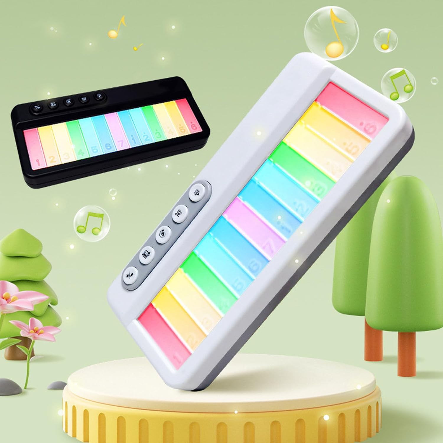 PIANO ELETTRONICO MULTIFUNZIONE: Combinando musica e educazione precoce, questo pianoforte giocattolo aiuta a sviluppare il potenziale del tuo bambino fin dalla giovane età. GIOCATTOLO PER LA PRIMA EDUCAZIONE: Promuovi il senso musicale e la coordinazione occhio-mano del tuo bambino con questo giocattolo musicale per la prima educazione, offrendo crescita e divertimento senza fine. DESIGN DI LUCI COLORATE: il giocattolo musicale attira l'attenzione del tuo bambino con effetti di luce colorati, migliorando il divertimento interattivo e il coinvolgimento durante il gioco. STRUMENTO PIANOFORTE PER BAMBINI SICURO: Realizzato con precisione e durata, questo strumento per pianoforte per bambini è adatto a bambini di età pari o superiore a 1 anno, garantendo un'esperienza di gioco . MUSICA DIVERSA INTEGRATA: Introduci il tuo bambino alle incantevoli melodie di diversi generi musicali fin dalla tenera età, iniziando il suo viaggio musicale fin dalla scuola materna.