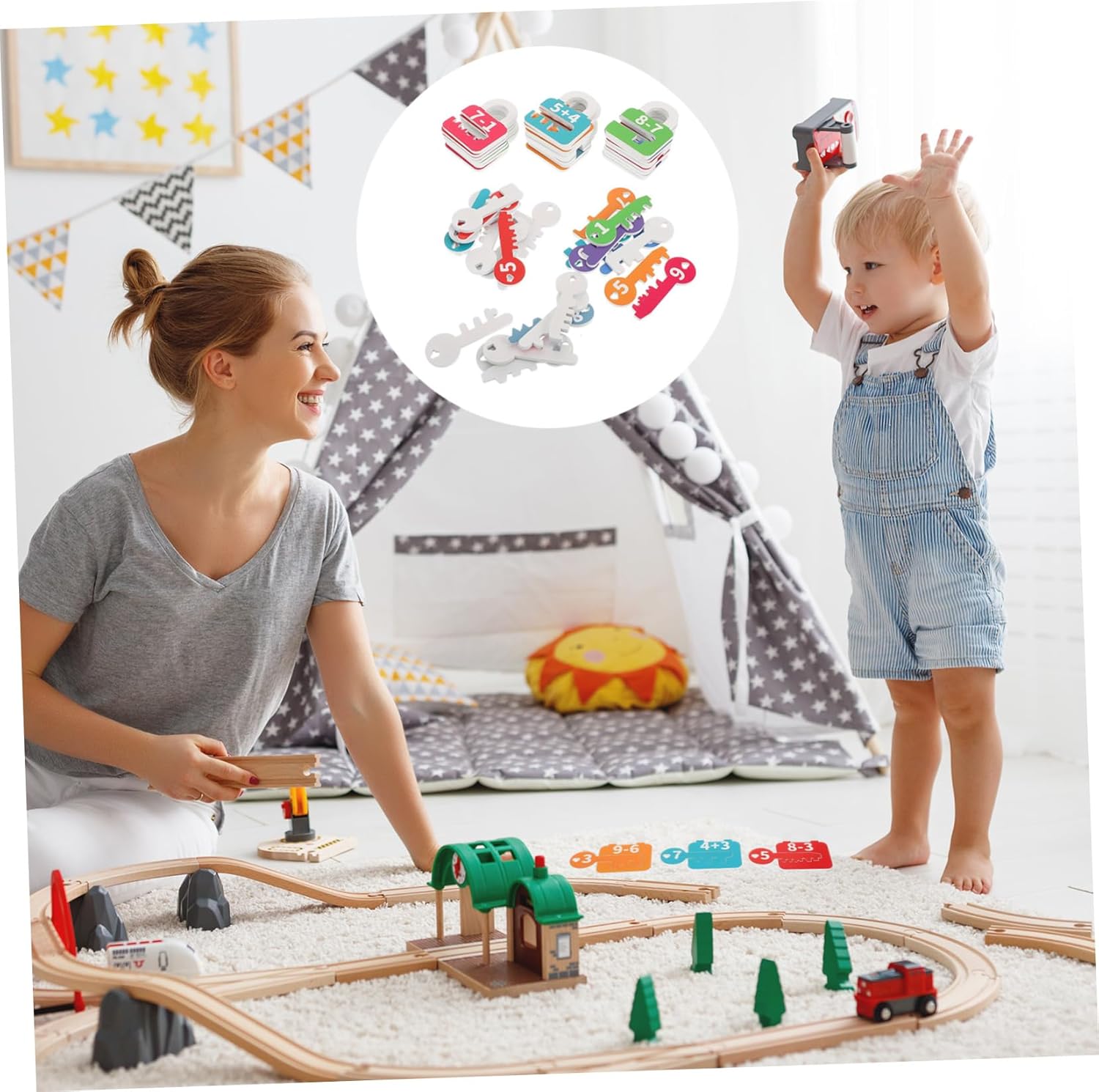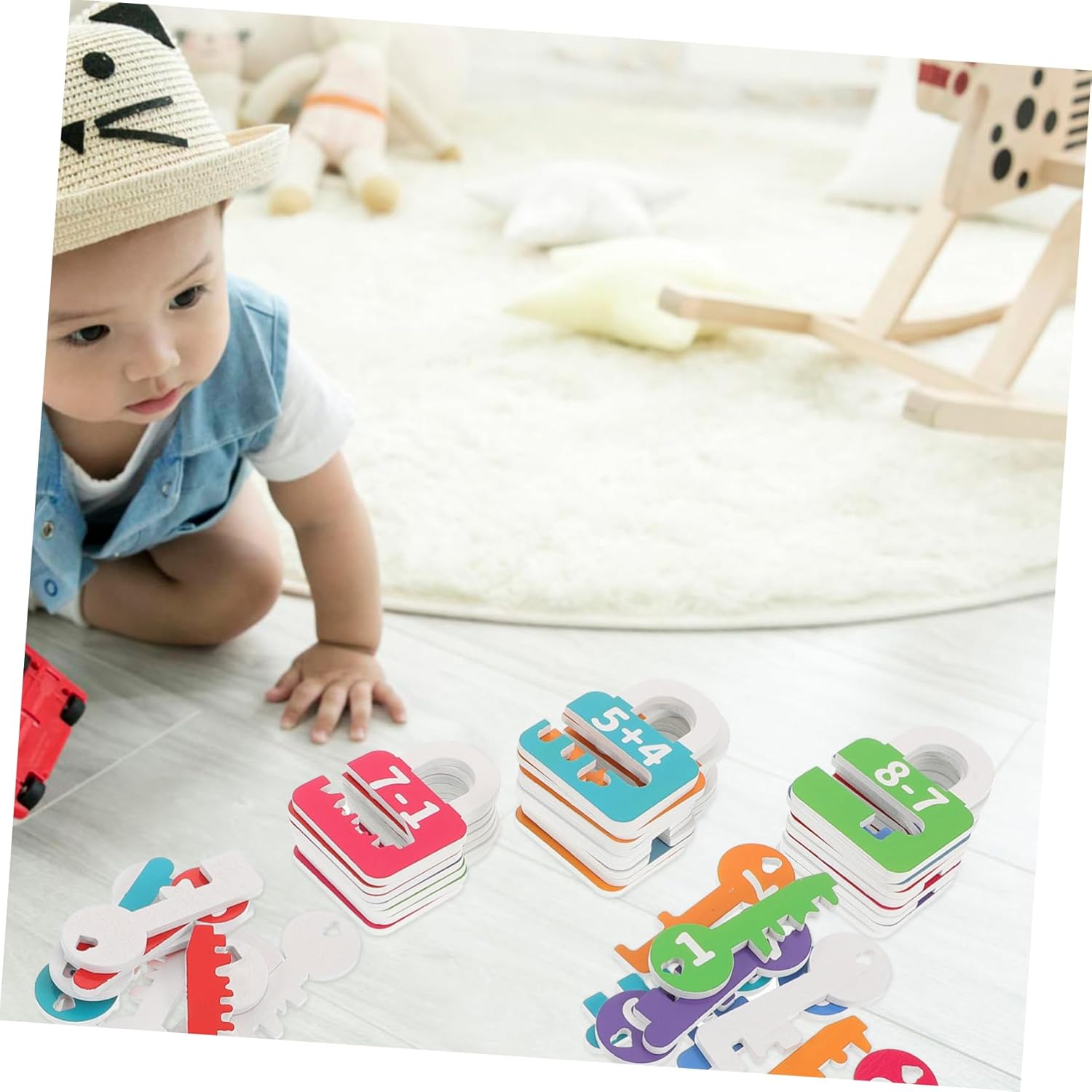 Esperienza di apprendimento interattivo: questo giocattolo educativo progettato per incoraggiare l'apprendimento pratico attraverso attività di abbinamento di numeri e pensiero logico, giochi di numeri e conteggio per bambini in età prescolare e ordinamento di numeri Rafforza le capacità motorie complesse: il design del puzzle incoraggia l'uso delle mani e delle dita, migliora la coordinazione, l'ordinamento e il conteggio di serrature e chiavi Incoraggia l'interazione sociale: il design del tavolo è ottimo per i giochi di gruppo e incoraggia il lavoro di squadra e la comunicazione tra bambini e genitori Sono disponibili giochi prescolari per abilità motorie fini e attività Montessori per abilità motorie fini Divertente gioco di ordinamento e abbinamento: questo introduce numeri e forme attraverso attività interattive di ordinamento e abbinamento, giochi di apprendimento in età prescolare e attività motorie complesse per bambini Educativo e divertente: combina divertimento e apprendimento con la corrispondenza dei numeri che stimola lo sviluppo cognitivo nei bambini piccoli, matematica per bambini in età prescolare, educativo per i più piccoli da imparare