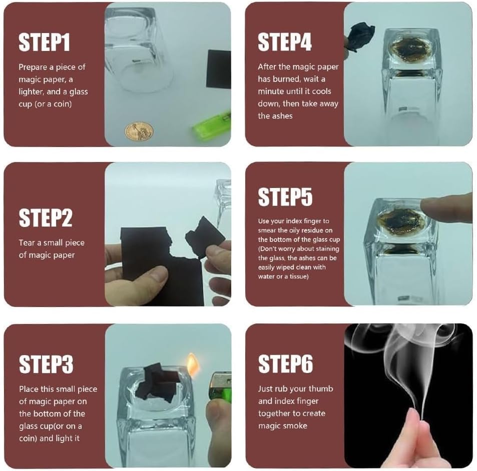 【Incredibile effetto magico】: strofina delicatamente il pollice e l'indice e osserva il fumo che si alza magicamente dalla punta delle dita. Questo trucco affascinante stupirà il tuo pubblico. 【Sicuro da usare】: Magics Smoke è realizzato con materiali sicuri e di alta qualità, è a temperatura ambiente ed è delicato sulla pelle. Goditi questo trucco senza preoccupazioni. 【Quantità sufficiente】: ogni set contiene 20 pezzi di carta magica che misurano 7 x 5 cm. Ogni pezzo può essere utilizzato circa 6-10 volte, offrendoti infinite possibilità per spettacoli magici. Facile da imparare: posiziona semplicemente un piccolo pezzo di carta magica sul fondo di un bicchiere o su una moneta e accendilo. Dopo che si sarà bruciato e raffreddato, spargete il residuo oleoso con il dito indice. Quindi strofina insieme il pollice e l'indice per creare il magico fumo magico. 【Gioia e sorpresa】: il fumo magico è una scelta eccellente per divertire amici, familiari e persone care e aggiungere ulteriore eccitazione alle feste e alle riunioni di Halloween. Esegui questo trucco per stupire e deliziare il tuo pubblico.