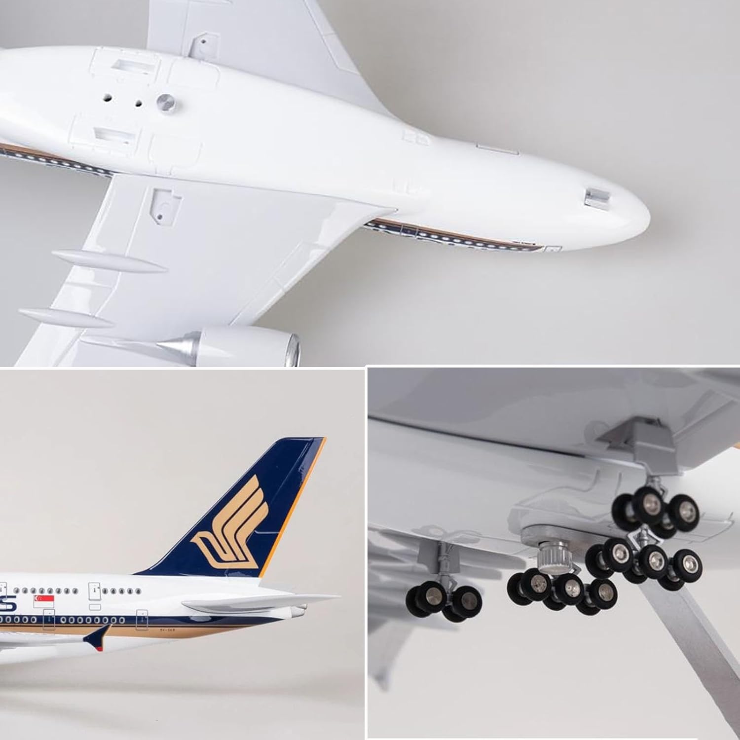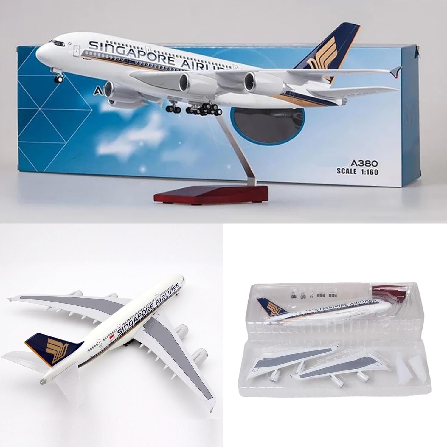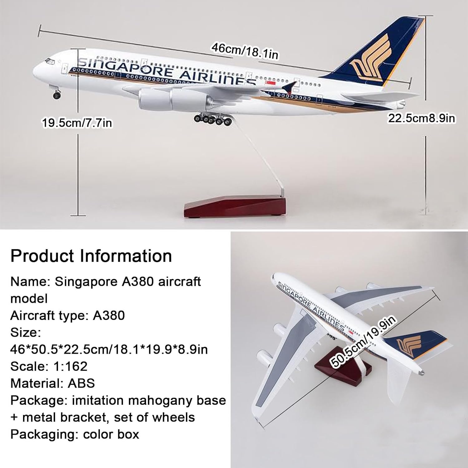 Modellino di aereo in scala realistica: modello di aereo modello Jet Singapore A380 da 18,1 pollici in scala 1:162 con ruote, modello di aereo, 18,1 x 19,9 x 8,9 pollici. Squisita fattura: il modello di aereo Singapore A380 adotta fusoliera in resina di alta qualità, base solida e staffa in lega metallica. Il modello dell'aereo è molto aerodinamico. Inoltre, il colore della carrozzeria è ricco e sottolinea la bellezza di molti dettagli. Modello di jet restaurato: modello di aereo Singapore A380 restaurato in scala 1:162, dimensioni: lunghezza dell'aereo (18,1 pollici), larghezza (19,9 pollici), base dell'aereo e altezza complessiva (8,9 pollici), peso circa 1 kg, scala ridotta consente una migliore visualizzazione di modelli di aerei in qualsiasi momento. Design semplice della fibbia: facile da montare e installare, basta installare le ali nella baionetta, quindi utilizzare la baionetta speciale assemblata for fissare la base e la fusoliera. L'installazione è molto semplice e rende la visualizzazione sul desktop più rapida e comoda. Stabile e altamente restaurato, è un'ottima scelta for chi ama collezionare modellini di aerei. Regalo da collezione: il modello di aeroplano viene fornito con una base pronta for l'esposizione, una bellissima decorazione e un oggetto da collezione for l'ufficio, la casa ed è un regalo perfetto for gli appassionati di aviazione, il personale militare o i collezionisti.