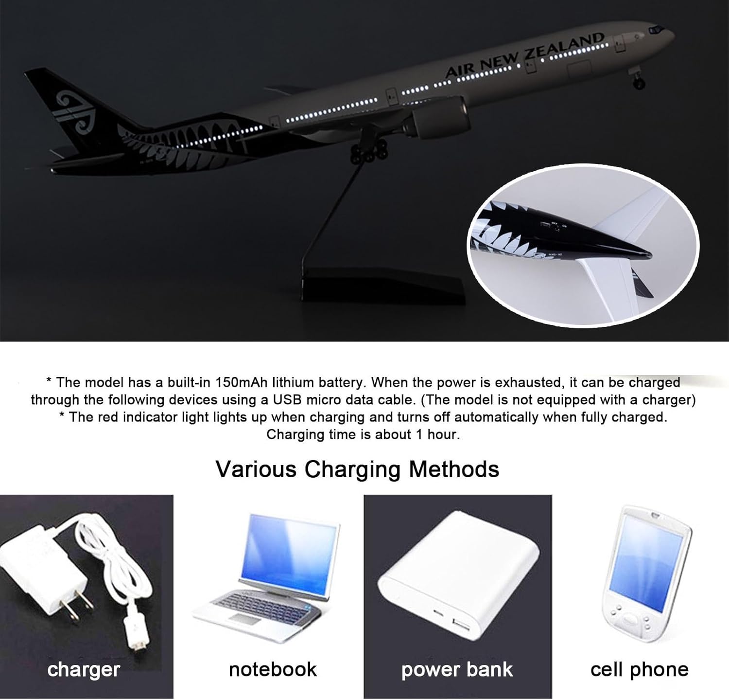 Modellino di aereo in scala realistica: modello di aereo modello Jet New Zealand B777-300 da 18,5 pollici in scala 1:130 con ruote, modello di aereo, 18,5 x 17 x 8,3 pollici. Design semplice a scatto: il modello B777 della Nuova Zelanda può essere facilmente installato in soli tre passaggi. Puoi esporre un modello migliore allo stand. Il modello di visualizzazione statica è completamente ridotto rispetto al modello originale e presenta un elevato grado di simulazione. LED e ruote: tocca o dai voce al modello dell'aereo, l'illuminazione della cabina si accenderà. Dopo 20 secondi, il modello dell'aereo entrerà in modalità di risparmio energetico e spegnerà automaticamente le luci a LED. Materiali dettagliati di alta qualità: l'aereo B777 della Nuova Zelanda utilizza fusoliera, base e staffe metalliche di alta qualità. I dettagli dalla scheda motore alla verniciatura sono meticolosi. Il modello generale dell'aereo è molto aerodinamico. I finestrini del modello dell'aereo sono chiaramente visibili. Regalo da collezione: il modello di aeroplano viene fornito con una base pronta for l'esposizione, una bellissima decorazione e un oggetto da collezione for l'ufficio, la casa ed è un regalo perfetto for gli appassionati di aviazione, il personale militare o i collezionisti.