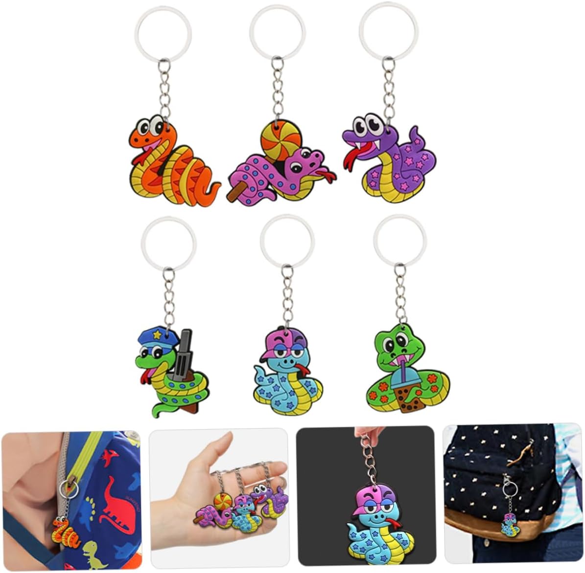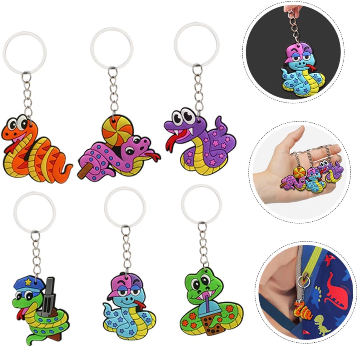 Portachiavi per borse: ogni set include adorabili portachiavi a forma di serpente, un adorabile per le feste con animali Portachiavi sfuso per --ideale da attaccare a zaini o chiavi della macchina, può essere la scelta ideale per inviare ciondoli a forma di serpente Portachiavi a forma di serpente: il design a forma di serpente aggiunge un elemento unico e giocoso a questi portachiavi, portachiavi con ciondoli per braccialetti Ideale per gli amanti degli animali: questo portachiavi creativo è un'ottima scelta per gli amanti degli animali che apprezzano design unici e artistici, portachiavi serpente per borsa, portachiavi animali Ciondoli a forma di serpente per portachiavi: un set di portachiavi, per aggiungere un tocco di divertimento alle bomboniere o alle borse dei gadget, portachiavi per riunioni di compagni di classe