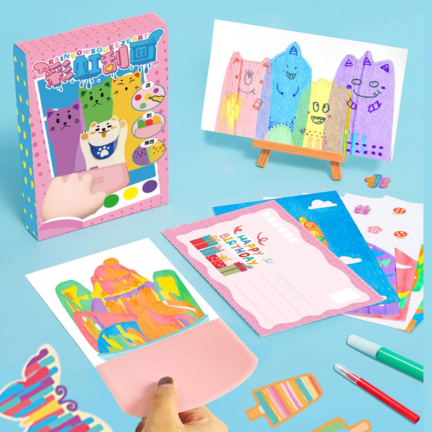 Complete 20-Piece Art Set: This all-inclusive painting kit comes with rainbow scratch papers, magic dot paints, squeegees, stickers, and essential tools—everything needed to create vibrant, professional-looking artwork right out of the box Premium Mess-Free Materials: Enjoy clean, frustration-free creativity with our high-quality scratch-resistant papers and ergonomic squeegees. Designed for smooth operation and crisp lines, these tools prevent smudging while making artistic expression effortless and enjoyable Included In The Kids Craft Kit: The art kits for kids comes with 20 sheets of drawing paper, 1 sticker, 7 kinds of paint, 6 watercolor pens, 1 squeegee Creative Fun: Squeegee Art Kids Paint Kit allows for creative fun that leads to the best masterpieces. Squeegee art combines experimentation and creativity, resulting in wonderful modern art Makes A Great Gift: Squeegee Art Kids Paint Kit that makes the perfect fun gifts for girls or fun gifts for boys. Abstract pointillism art encourages expression and is a gift suitable for all ages
