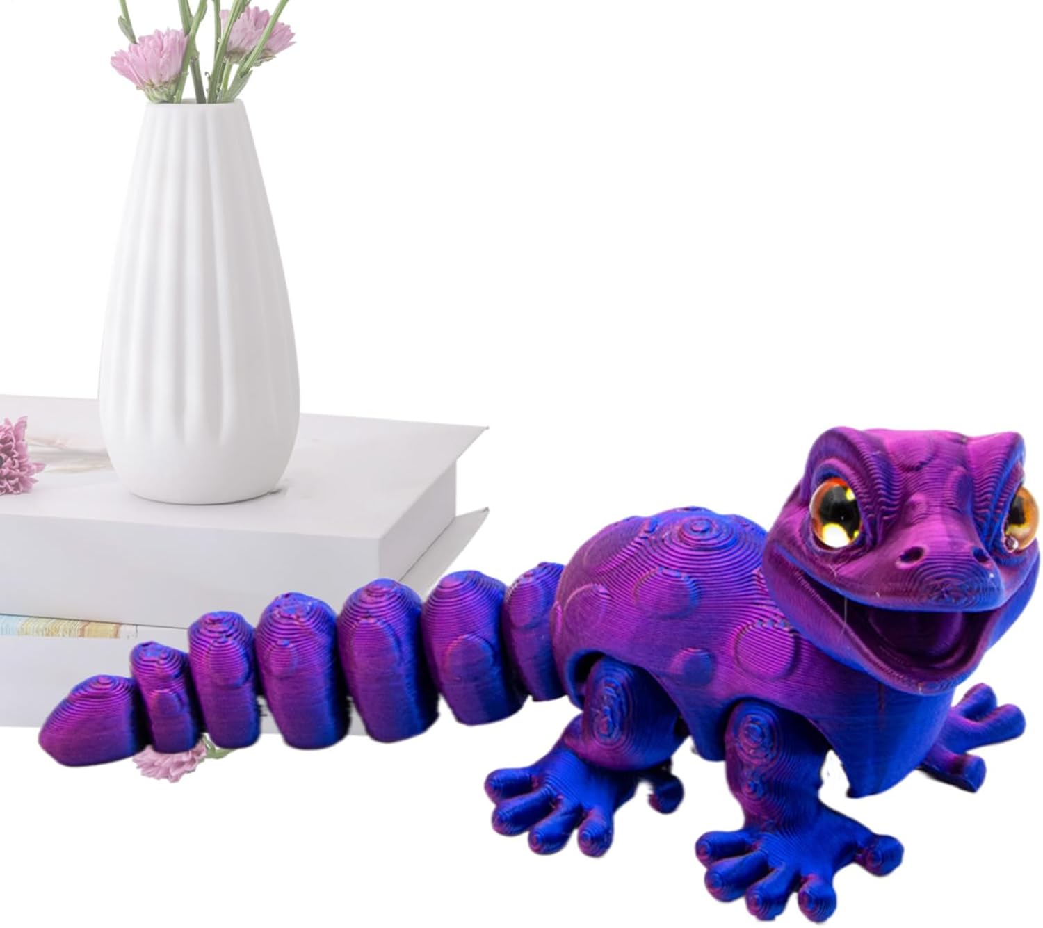 Lifelike Lizard Sculpture: Featuring 3D carved craftsmanship and realistic eye design, this model captures a dynamic pose replication for an authentic animal sculpture appeal, perfect for display or collection purposes Dynamic Color Shifting: Experience a radiant visual effect with a light-responsive finish, enhanced by an optical coating that reflects mesmerizing hues, perfect for display or creative projects Compact Desk Ornament: A detailed 3D printed lizard model, perfect as a collectible art piece and stylish space accent for shelf or desk display, blending creativity with functionality for any setting Delicate Touch Experience: The 3D printed lizard model provides a delicate touch with advanced layering technology, ensuring realistic texture and limb details while stabilized movable joints improve durability and display flexibility Operate Easily: Perfect for crafting mini ecosystem scenes, this lizard model supports both individual and group displays, offering more possibilities for interactive arrangements