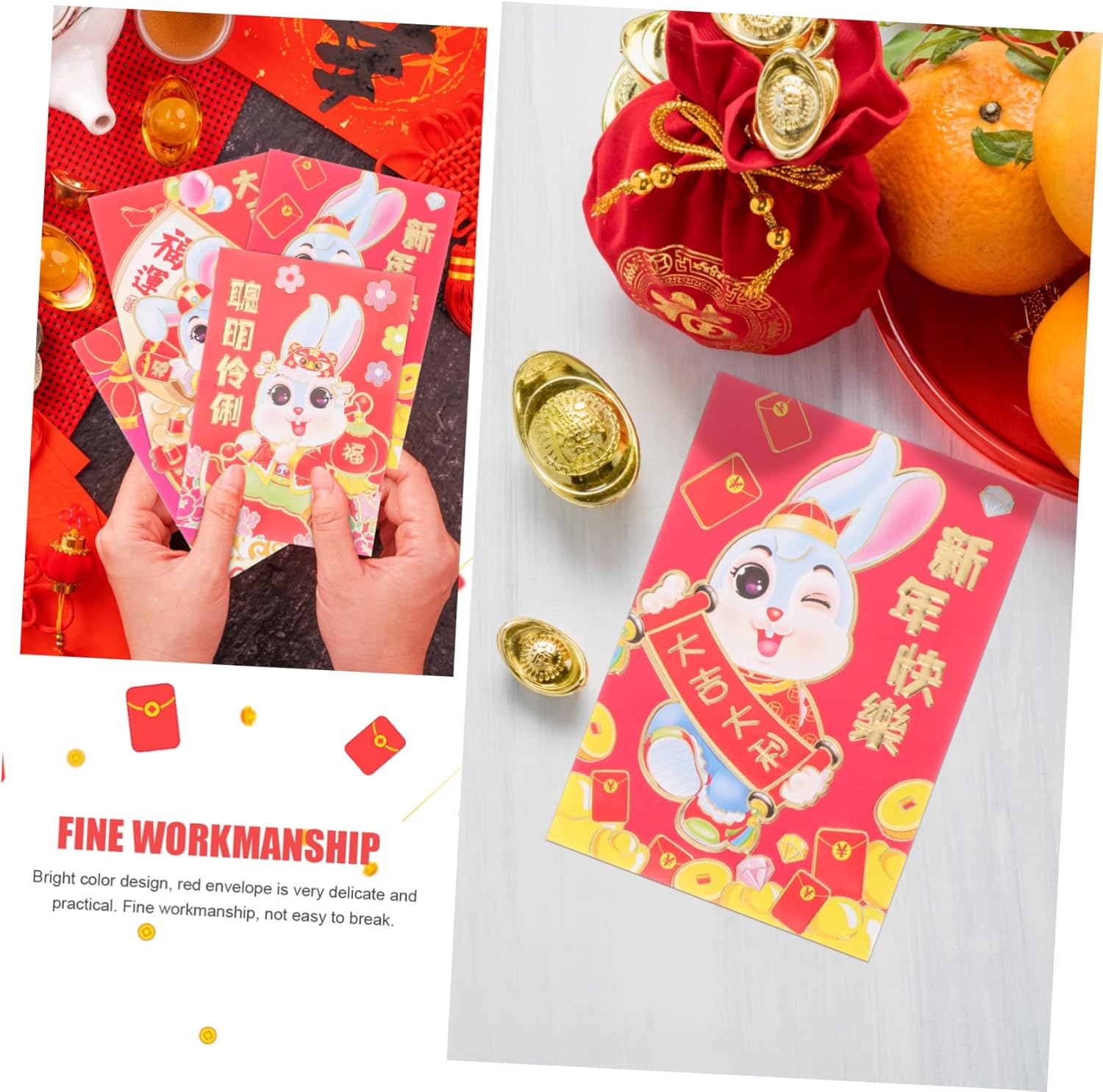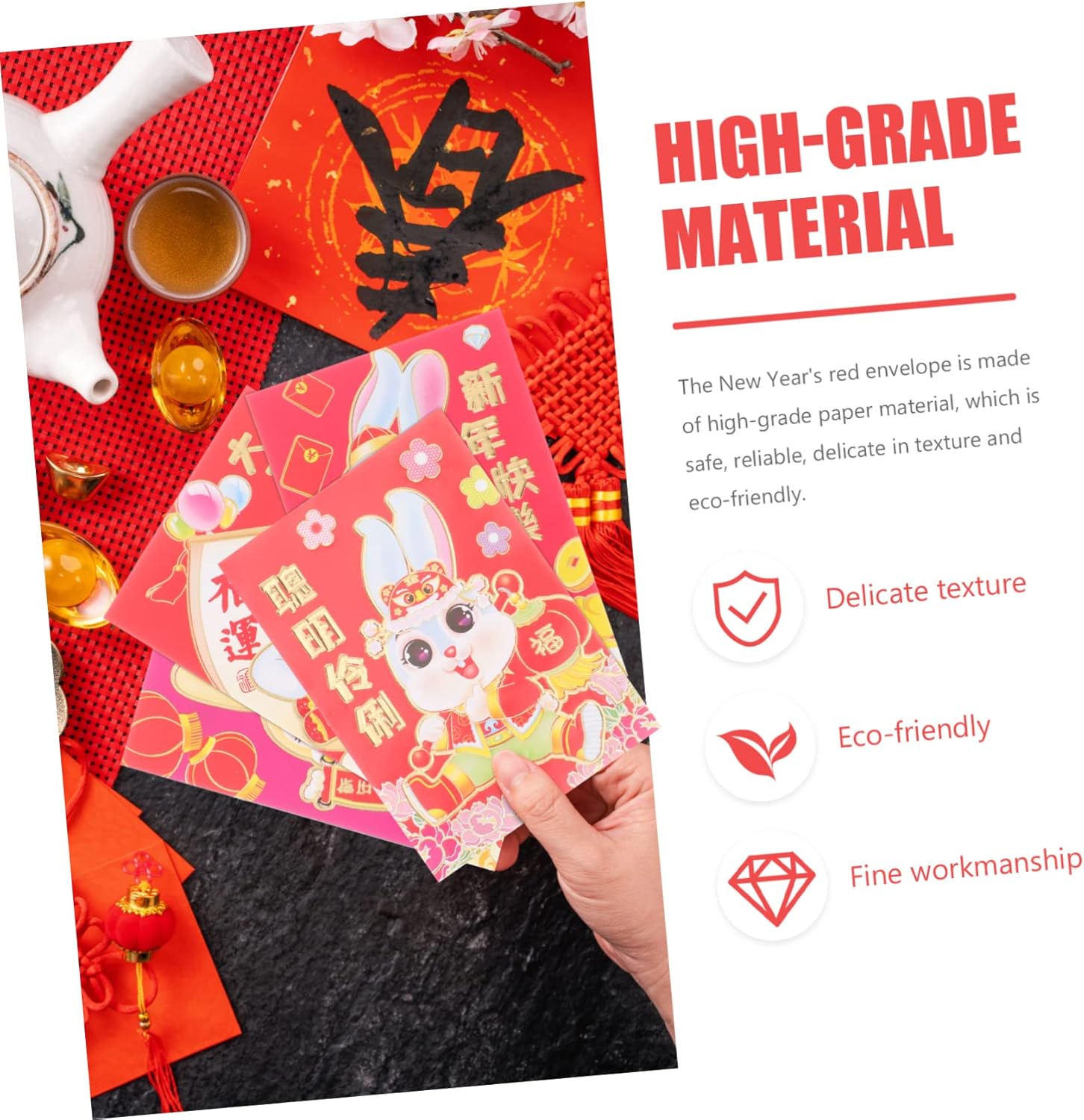 Pacchetto rosso dell'anno del coniglio: puoi inviarli come scelta per la tua famiglia, amici, parenti, colleghi per impressionarli e mostrare meglio la tua preoccupazione, luck money bag Busta rossa con motivo coniglietto: ogni busta rossa augura ai destinatari gioia, prosperità, benedizioni, fortuna, che possono portare benedizioni alle vostre famiglie e ai vostri amici, pacchetti rossi di capodanno Pacchetto rosso di capodanno: riceverai abbastanza buste rosse tradizionali cinesi, che possono essere sufficienti per un periodo di tempo, buste rosse di carta Pacchetto rosso dei cartoni animati: la busta rossa porterà fortuna alla che la riceve e porterà fortuna anche alla che l'ha inviata, pacchetto rosso dello zodiaco 2023 Busta rossa: le classiche e tradizionali buste rosse possono essere utilizzate per matrimoni, capodanno cinese e altre occasioni di festa, bunny year red packet
