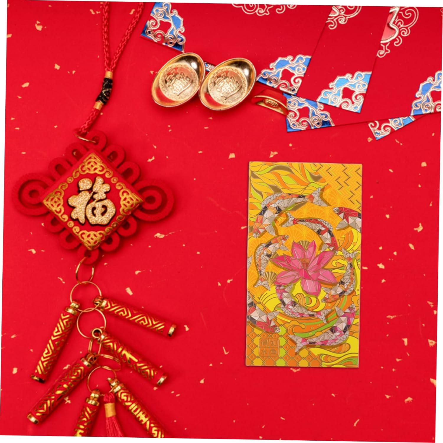 Stile cinese: enfatizza la cultura tradizionale cinese con un design sofisticato. Lamina d'oro: presenta un processo di lamina d'oro in rilievo vintage per un tocco lussuoso. Esclusivo per le vacanze: progettato appositamente per la festa di primavera, rafforza l'atmosfera festosa. Capacità generosa: può ospitare più banconote, offrendo molto spazio. Ideale per il : adatto a tutti gli eventi, rendendolo un'ottima scelta .