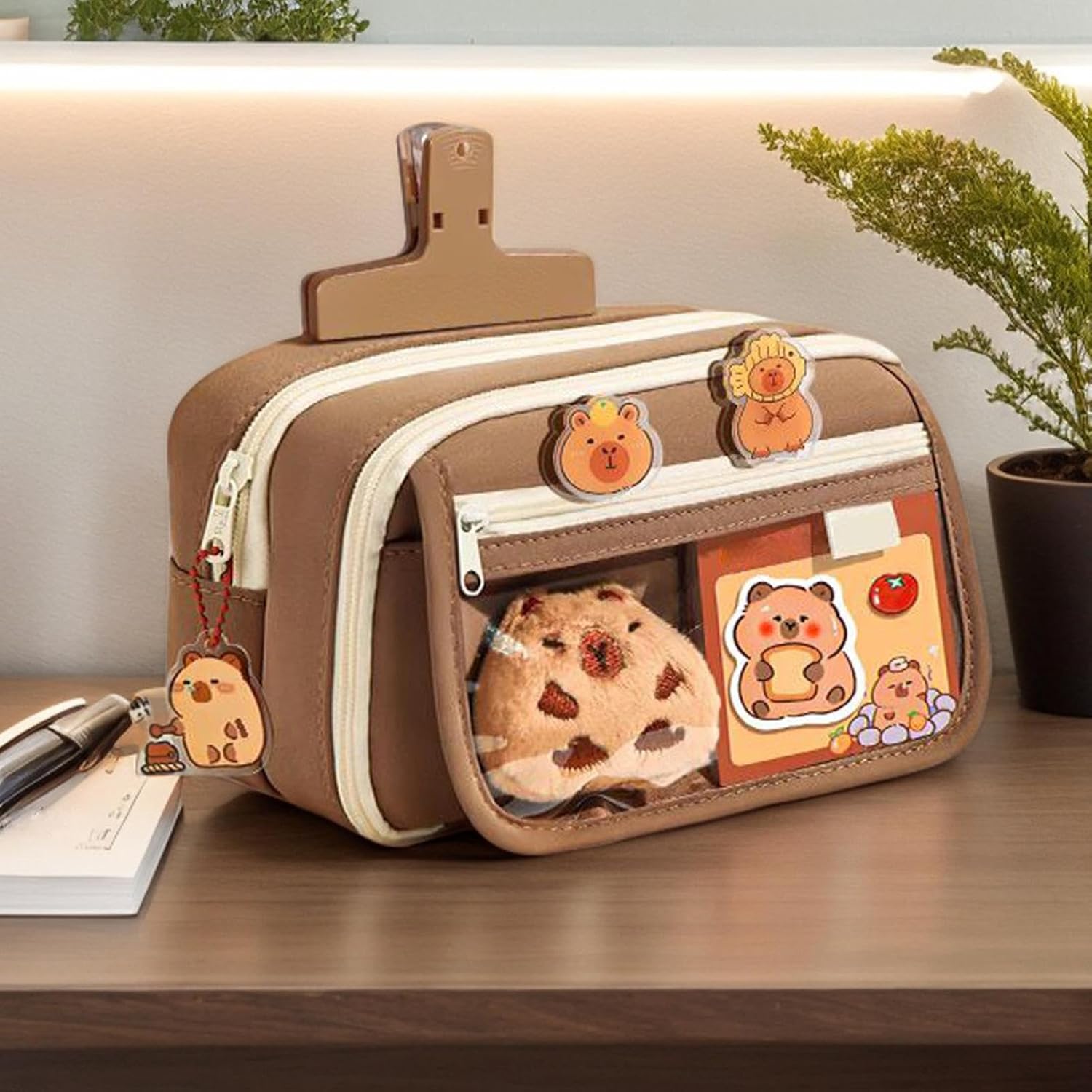 Tema Capibara : Aggiunge un tocco di divertimento studio con il design vivace e adorabile dei capibara, rendendo l'uso quotidiano piacevole e stimolante sia per studenti che appassionati di cancelleria. Maneggevolezza Premium: Progetto pensato per portabilità estrema grazie a materiali ultraleggeri, rinforzi angolari per durabilità prolungata e di chiusura scorrevole che assicura funzionamento senza sforzo ogni giorno Ideale per Bambini:Portamatite a tema capibara che regala sorrisi, per compleanni, celebrazioni natalizie e come speciale per la Giornata dei Bambini. Design accattivante e pratico per la scuola quotidiana. Tutto incluso: Dotazione completa con cinque penne, adesivi, foglietti adesivi, clip, portachiavi e ciondolo in peluche per annotare idee, abbellire gli spazi e usi versatili, pronto all'uso immediato Layout Pratico: I 9 scomparti ben organizzati consentono di conservare e trovare matite colorate evidenziatori e accessori con estrema facilità in un di archiviazione visivamente chiaro