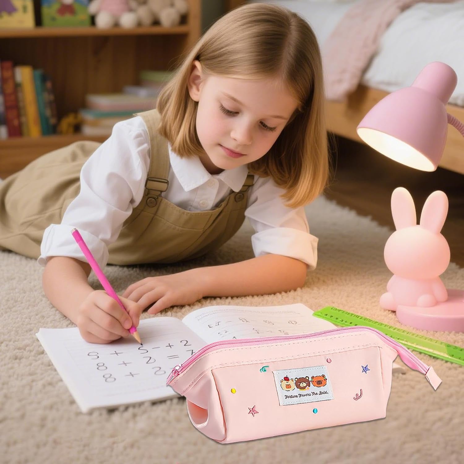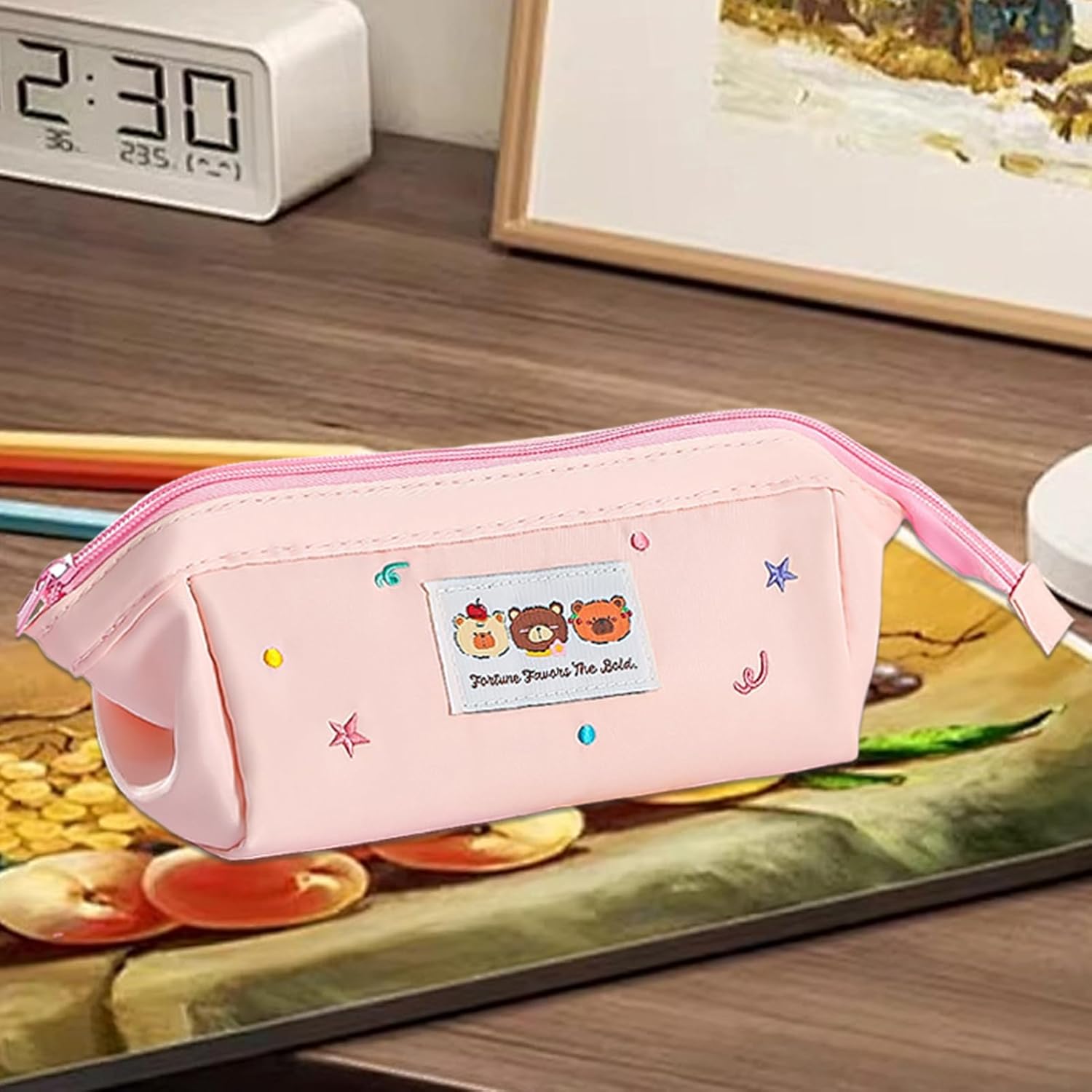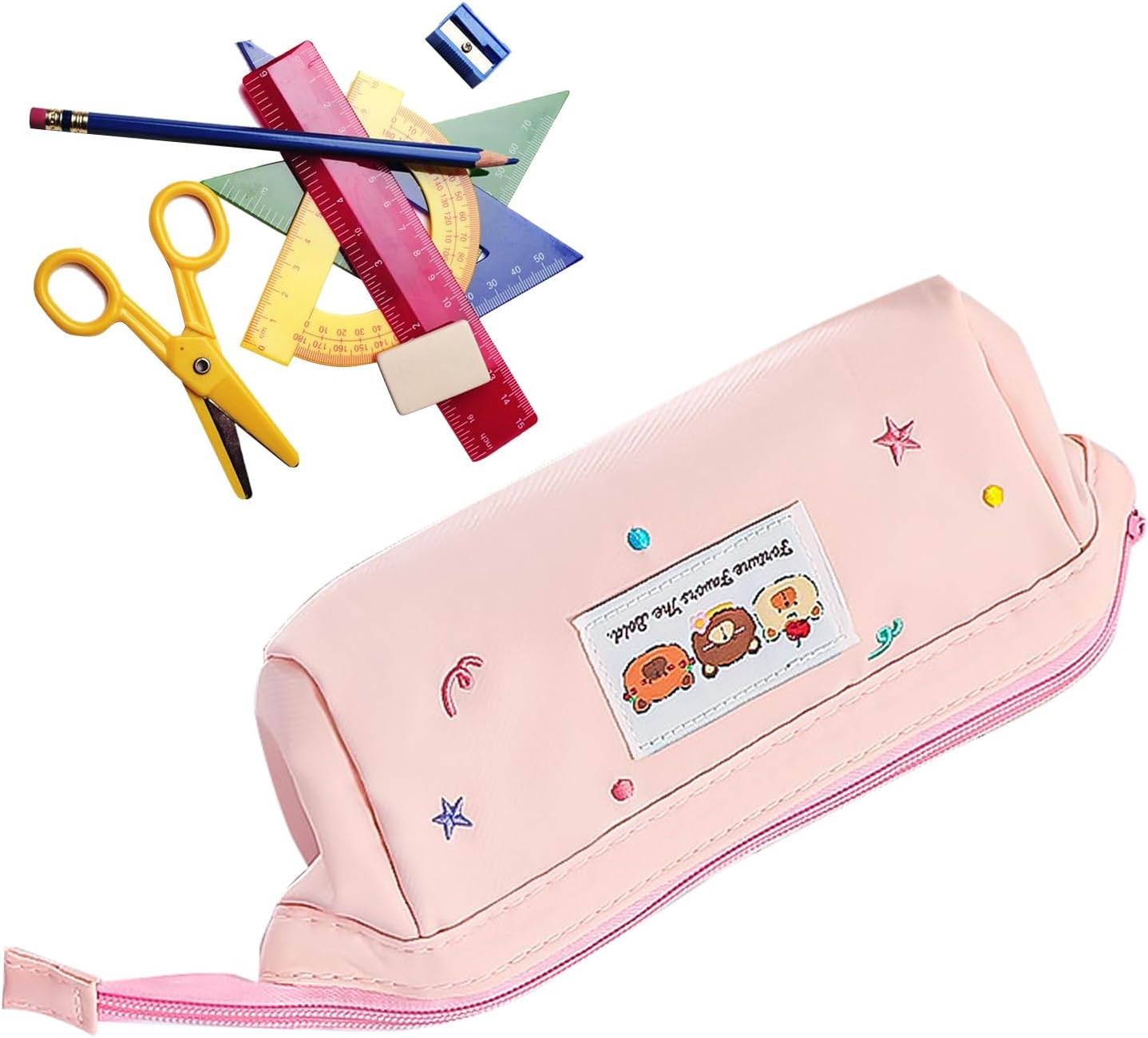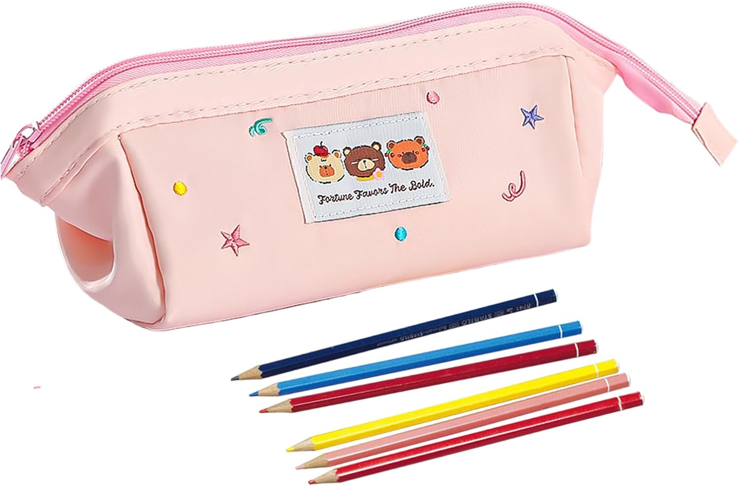 Layout Funzionale: Include tasche divisorie a rete, portapenne elastici e protezioni imbottite per compartimenti organizzati che semplificano la gestione degli oggetti Regalo Premuroso: Portamatite realizzato con cura, scelta versatile come regalo pratico per scuola, accessorio estetico o sopresa pensata. per occasioni come la ripresa scolastica con design adorabile e funzionalità organizzativa quotidiana Accessorio Fotogenico: Questo portamatite con tavolozza di colori tenui è un accessorio da scrivania elegante. Realizzato in resistente tela poliestere, include una cerniera scorrevole per un accesso facile e pratico. Design Spazioso: Progettato per oltre 40 penne, svolge doppia funzione come astuccio da trasporto e contenitore per pennelli, offrendo ampio spazio modulabile per esigenze di organizzazione quotidiana Accessorio Giocoso ed Elegante: La trousse con ricamo evidenzia orsetti stellati su tessuto canvas distintivo, creando un accessorio giocoso e alla moda che cattura il fascino 'ispirazione creativa e speciale o stile Harajuku