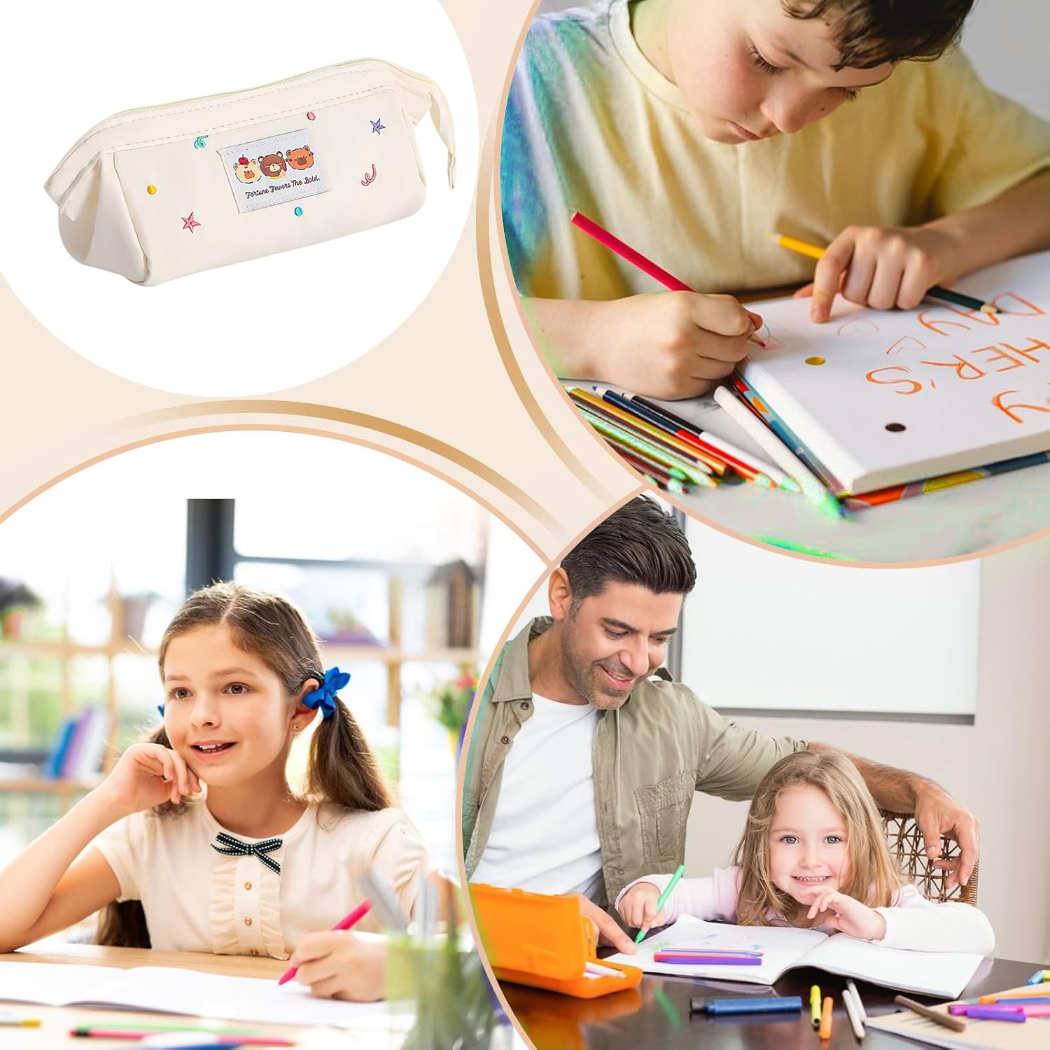 Organizzazione Efficiente: Tasche divisorie a rete, portapenne elastici e compartimenti organizzati per accesso immediato agli oggetti, mantenendo tutto perfettamente in ordine Portamatite Incantevole: Design delizioso che funge sia da regalo scolastico pratico che accessorio estetico. Presente pensato per migliorare l'organizzazione a scuola o nella vita quotidiana con spazio ben strutturato e materiale resistente Accessorio Fotogenico: Questo portamatite con tavolozza di colori tenui è un accessorio da scrivania elegante. Realizzato in resistente tela poliestere, include una cerniera scorrevole per un accesso facile e pratico. Design Spazioso: Progettato per oltre 40 penne, svolge doppia funzione come astuccio da trasporto e contenitore per pennelli, offrendo ampio spazio modulabile per esigenze di organizzazione quotidiana Troussa Stile Harajuku: L'adorabile astuccio con ricamo fonde l'appeal di accessorio giocoso ed elegante con il design stile Harajuku per un look speciale e accattivante, per uso quotidiano o come idea regalo