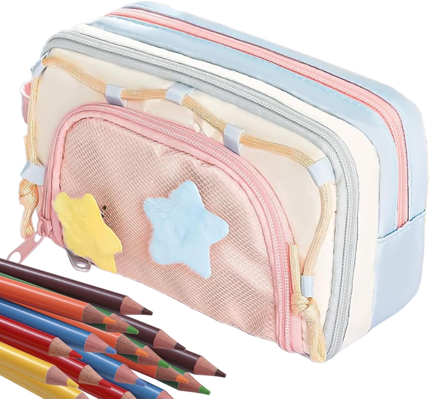 Contrasti cromatici creativi: La combinazione di stella a cinque punte e colori audaci crea un'estetica dinamica e allegra, in linea con le preferenze di stile moderno dei giovani studenti Capienza Abbondante: Un astuccio roomy che soddisfa diverse esigenze dallo studio ai compiti, assicurando ampio spazio per penne, matite e altri articoli di cancelleria in modo organizzato e funzionale Accesso Efficiente: L'architettura a più scomparti garantisce accesso immediato e sicuro, contenendo matite, penne, righelli e vari oggetti di cancelleria in modo stabile e ben organizzato Ideale: Progettato per occasioni come Natale, back to school e Festa dei Bambini, questo astuccio è per ragazzi e ragazze, adatto anche per compleanni, offre praticità e fascino in una confezione deliziosa per bambini di tutte le età. Impieghi diversificati: L'astuccio fornisce una sistemazione compatta per articoli di cancelleria, cosmetici e cavi di ricarica, rivelandosi una scelta altamente funzionale per la scuola, le vacanze e contesti diversi grazie al suo design adattabile e alla capacità organizzativa