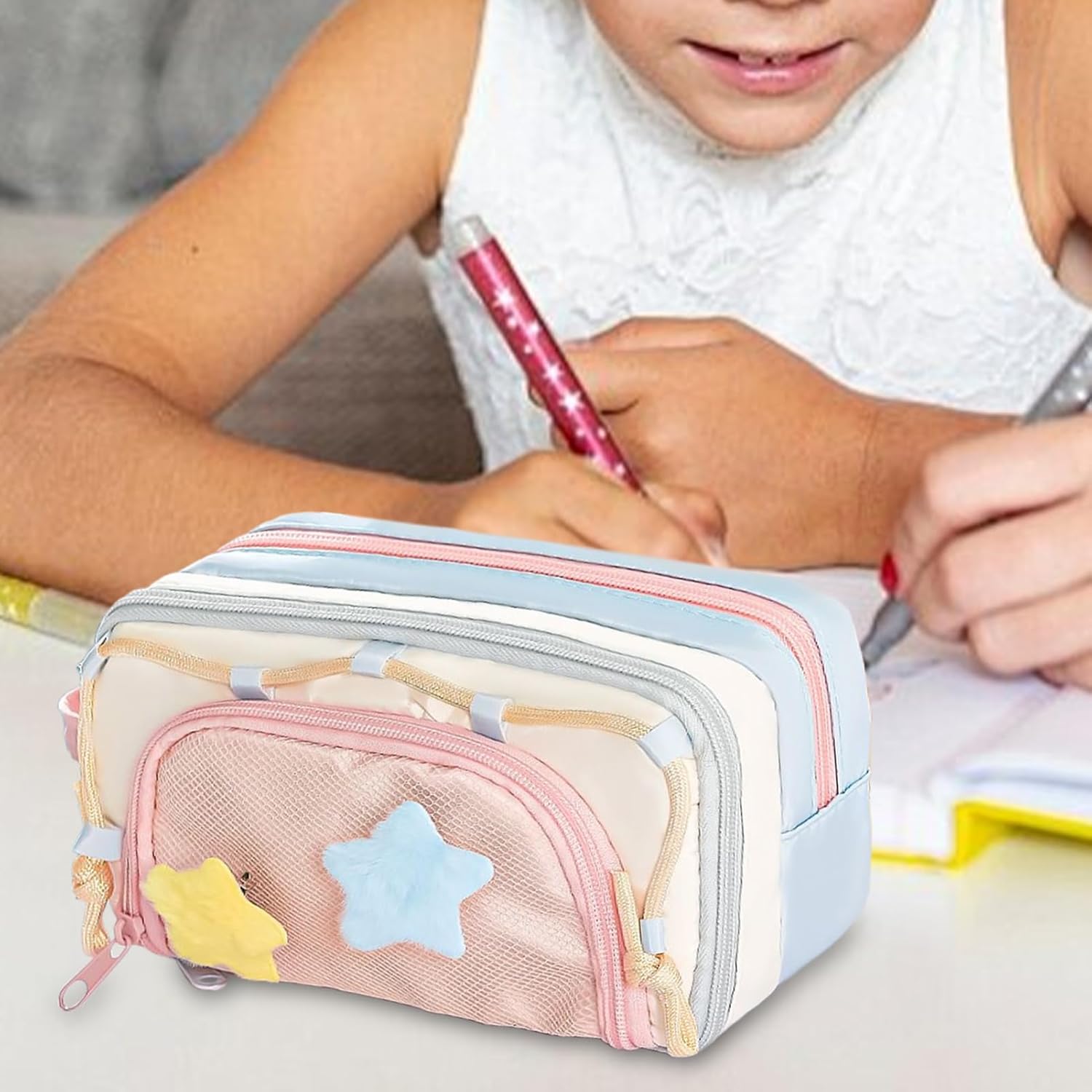 Contrasti cromatici creativi: La combinazione di stella a cinque punte e colori audaci crea un'estetica dinamica e allegra, in linea con le preferenze di stile moderno dei giovani studenti Spazio Ampio: Progettato con una architettura degli spazi ottimizzata, l'astuccio offre generosa capienza per riporre diversi tipi di cancelleria, soddisfacendo le necessità accademiche e quotidiane con praticità Accesso Efficiente: L'architettura a più scomparti garantisce accesso immediato e sicuro, contenendo matite, penne, righelli e vari oggetti di cancelleria in modo stabile e ben organizzato Ideale: Progettato per occasioni come Natale, back to school e Festa dei Bambini, questo astuccio è per ragazzi e ragazze, adatto anche per compleanni, offre praticità e fascino in una confezione deliziosa per bambini di tutte le età. Ampia gamma di utilizzi: Oltre alla tradizionale funzione portamatite, questo articolo accoglie piccoli essenziali come trucchi e cavi, offrendo praticità per la scuola, le escursioni e vari ambienti grazie alla sua progettazione versatile e alla capacità di mantenere tutto in ordine