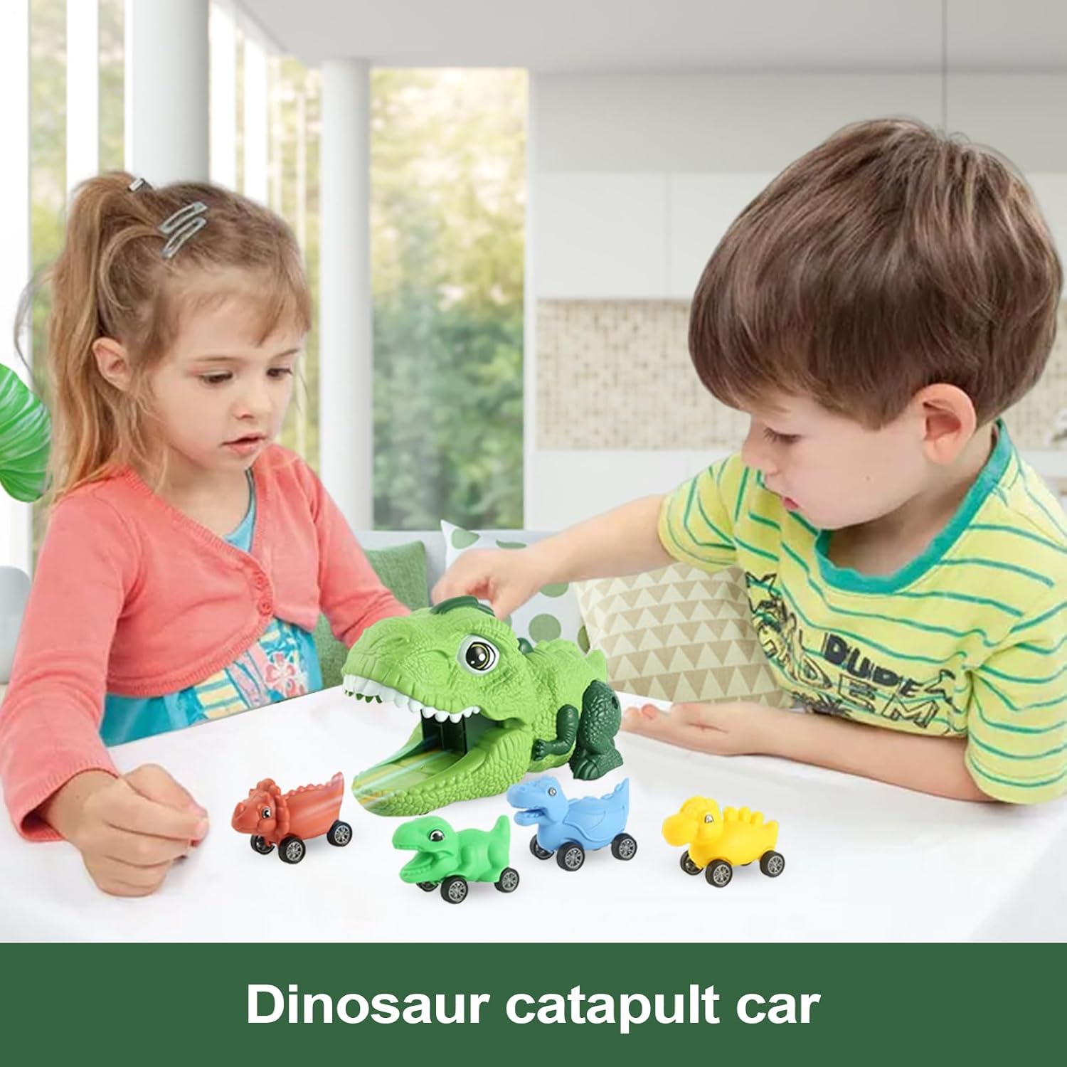 Giocattolo dinosauro interattivo: Sperimenta un divertimento prolungato con l'oscillazione naturale e gambe che attiva movimenti dinamici, sviluppando le abilità di percezione motoria attraverso il movimento inerziale senza batterie per un coinvolgimento duraturo Sicurezza Assoluta: Questo giocattolo dinosauro auto è progettato con una struttura sicura che previene urti accidentali e mantiene stabilità grazie a doppio di fissaggio con buckle posteriore e interruttori a pressione per prestazioni affidabili durante il gioco Funzione di gioco partecipativo: Questo giocattolo engaging presenta un design dinamico i bambini attivano le azioni di espulsione e scorrimento 'auto interna, favorendo la coordinazione occhio-mano e ispirando la curiosità attraverso il controllo del movimento a bocca del dinosauro in scenari di gioco immaginativi Regalo Elegante: Un giocattolo auto dinosauro ideale come regalo per compleanni, festività, Natale e Capodanno, esprime amore e cura verso bambini, ragazzi e ragazze. Arricchisce le esperienze di gioco con il suo design unico e accattivante che cattura l'immaginazione Design Accattivante: Fonde l'aspetto tridimensionale dei dinosauri con macchinine multicolori, ricreando vividamente le caratteristiche e creature preistoriche mentre potenzia l'immaginazione e cattura l'attenzione con dettagli giocosi