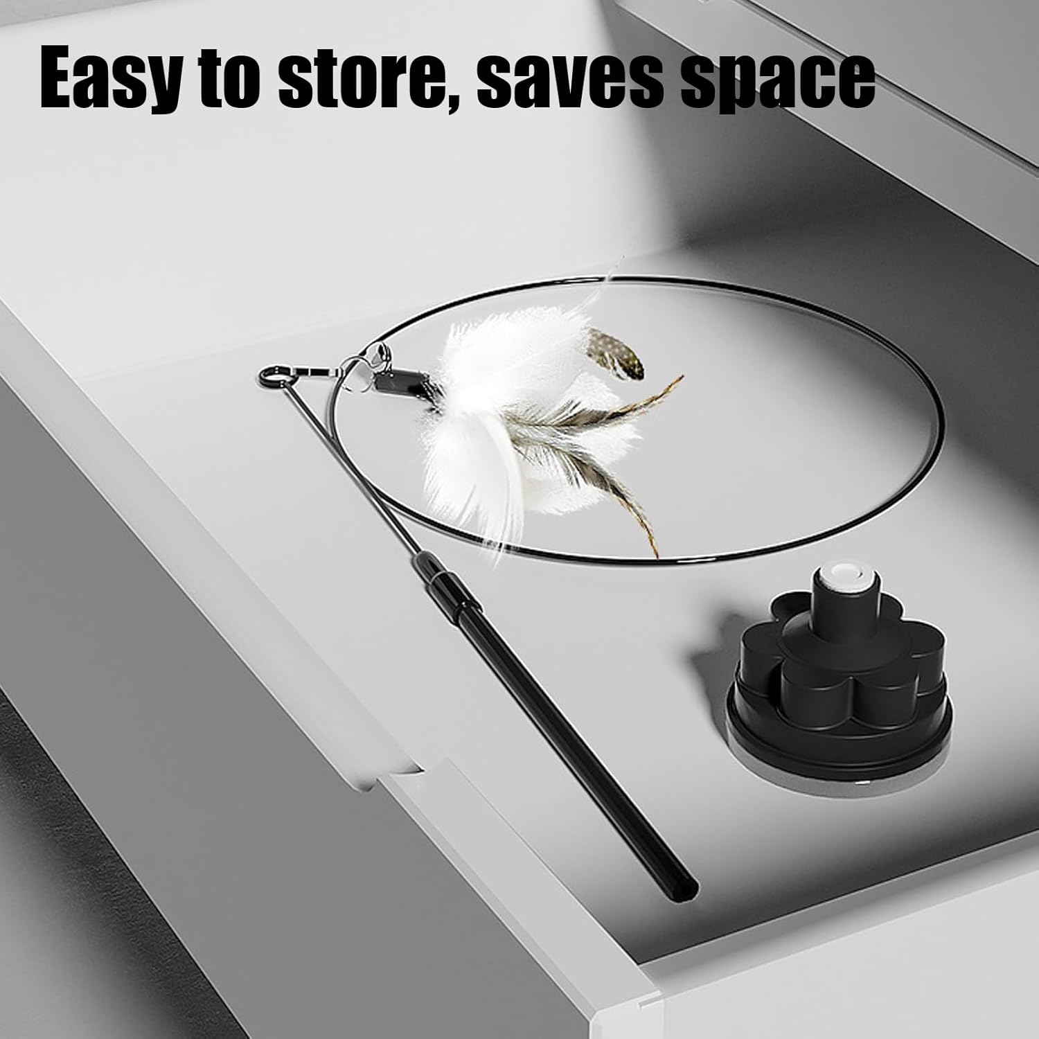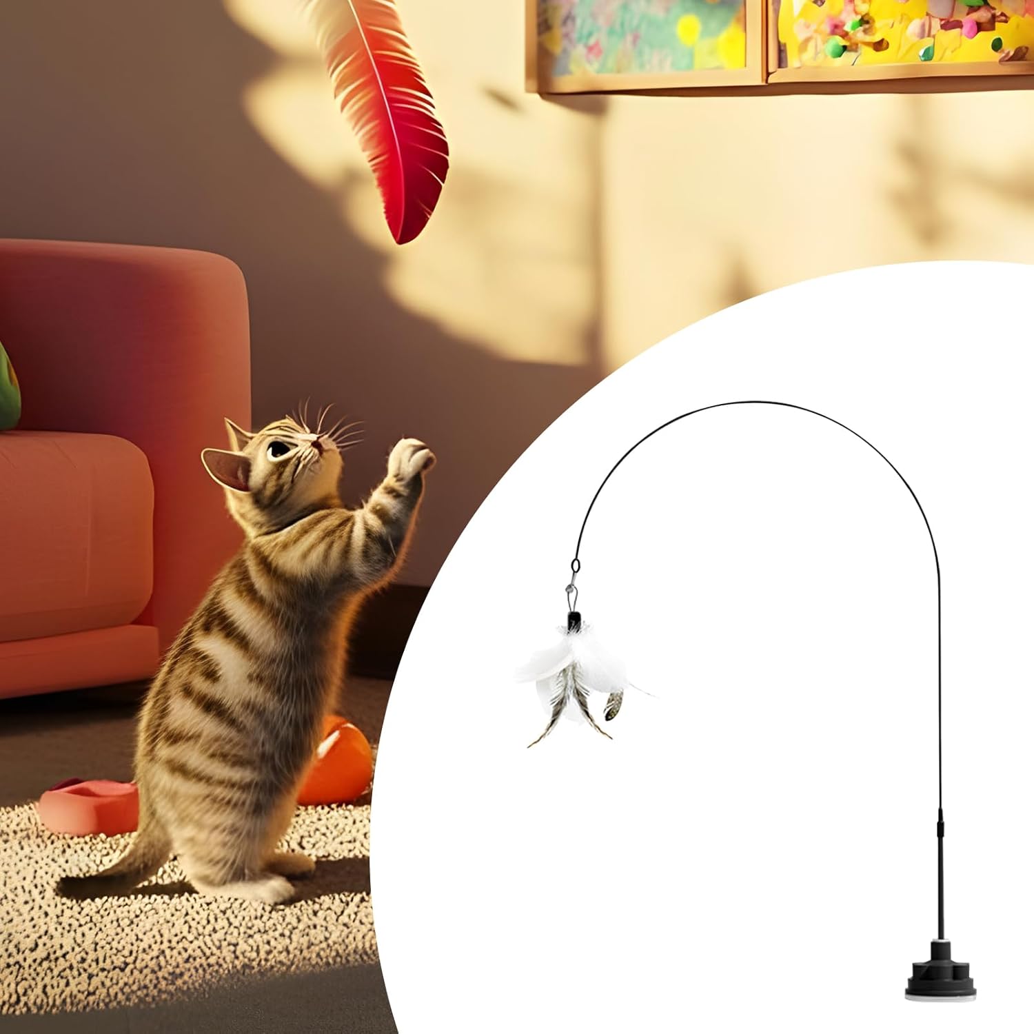 Design alla moda: Dotata di una base a ventosa progettata per un attacco semplice su superfici lisce, questa bacchetta teatrale per gatti offre ai proprietari una soluzione pratica per intrattenere i propri gatti durante le sessioni di gioco. Il design moderno e funzionale si adatta perfettamente agli ambienti domestici contemporanei, garantendo un aspetto elegante essendo estremamente utile. La ventosa robusta assicura un fissaggio stabile, consentendo al vostro gatto di giocare in modo sic Esperienza di Gioco Avvincente: Riproduce il volo degli uccelli attraverso movimenti imprevedibili delle piume, catturando l'attenzione felina e offrendo ore di intrattenimento per alleviare la noia quotidiana. Questo design innovativo garantisce che il gatto rimanga coinvolto grazie a movimenti dinamici che simulano il comportamento naturale degli uccelli Materiali Robusti: Costruito per sopportare morsi e graffi, il bastone presenta materiali in ABS ad alta resistenza e filo metallico, offrendo una soluzione durevole che intrattiene il gatto in modo sicuro e senza preoccupazioni Scelte variegate: Offre ore di divertimento con stili di gioco versatili per gatti, permettendo interazione diretta e l'opzione unica di battere sul telaio della porta, migliorando naturalmente divertimento ed esercizio. Un modo efficace per tenere il tuo gatto impegnato e felice a lungo Sostiene stili di vita attivi: Ispira movimenti energetici per mantenere i gatti in , agili e sani, promuovendo la felicità attraverso il gioco interattivo quotidiano con il bastone da gioco per gatti, ideale per stimolare il loro naturale istinto al movimento