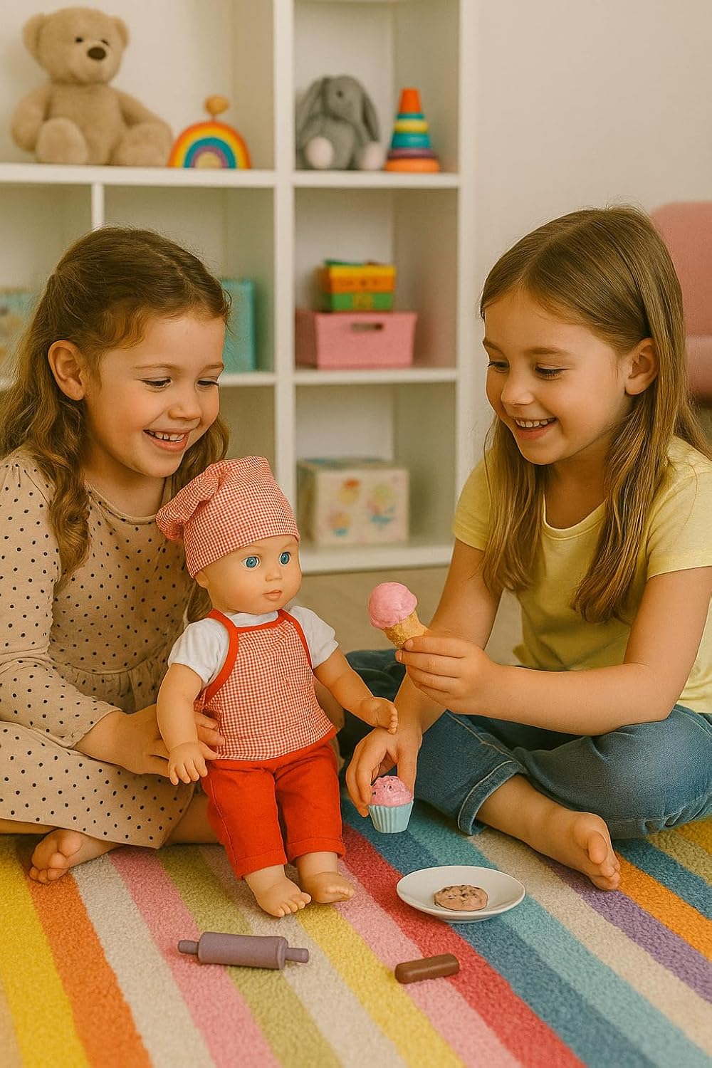 👩🍳 Bambola Chef Mary 33 cm – Graziosa bambola vestita da piccola cuoca con grembiulino e cappellino, pronta a cucinare tante ricette immaginarie. 🍩 Con accessori da cucina – Include dolcetti, utensili e piattini per inventare giochi di pasticceria e simulare la preparazione di deliziosi dessert. 🎀 Gioco educativo e creativo – Stimola fantasia, manualità, linguaggio e capacità relazionali attraverso il gioco di ruolo. 👶 Adatta ai più piccoli – Realizzata con materiali sicuri e resistenti, indicata per bambini dai 2 anni in su. 🎁 Idea regalo perfetta – Un giocattolo originale e divertente per bambine e bambini, ideale per compleanni, Natale e feste speciali.