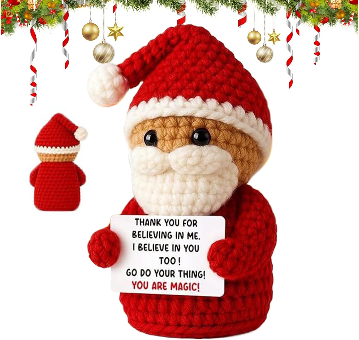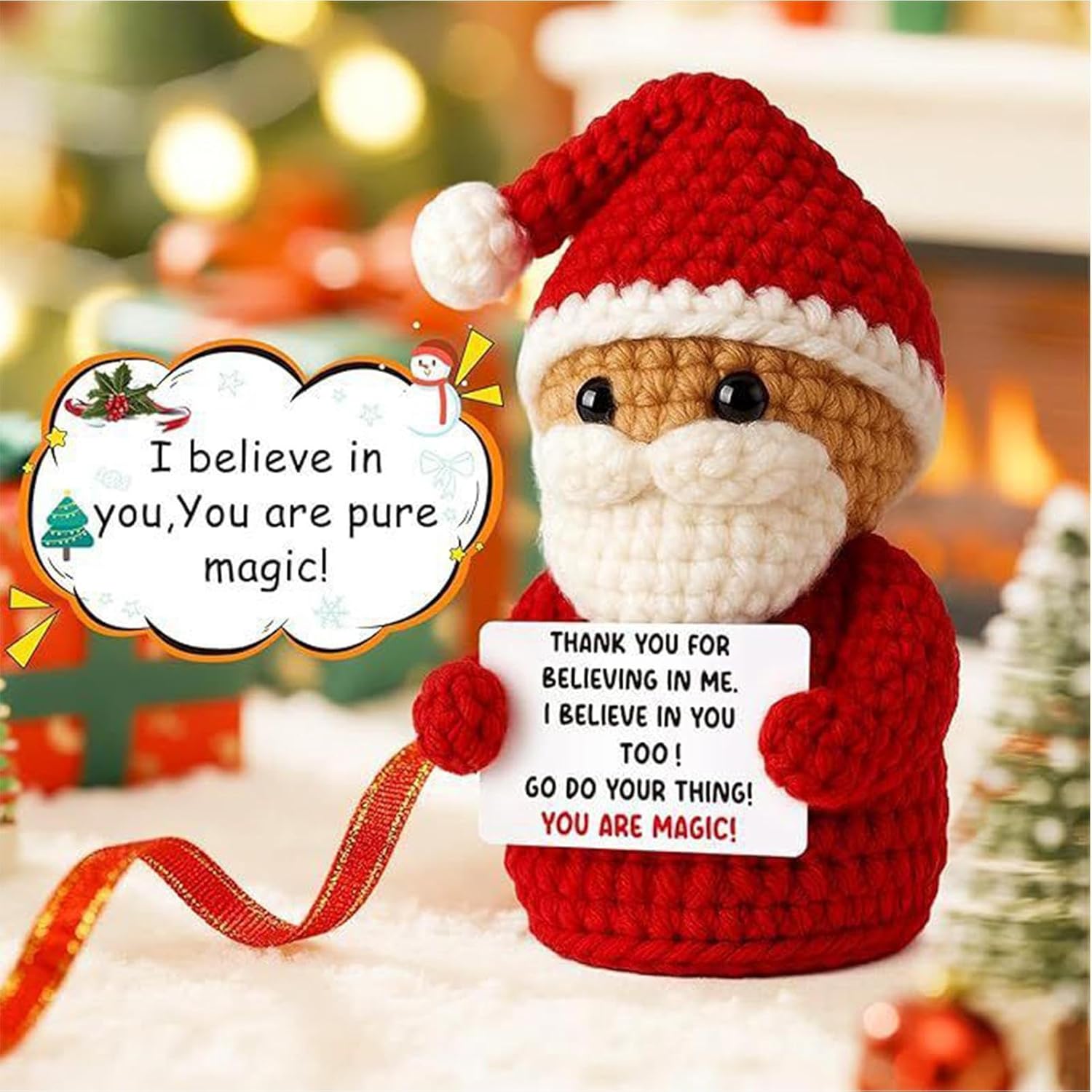 Display per Aree Multiple: Grazie alla sua capacità di valorizzare vari spazi, questa bambola di Babbo Natale all'uncinetto incorpora tradizionali delle festività, rendendola una scelta ideale per infondere allegria in diverse aree della casa durante il periodo festivo, aggiungendo un tocco classico natalizio e promuovendo un'atmosfera vivace e invitante che abbellisce naturalmente ogni angolo con spirito festoso e tradizionale. Opzioni di Esposizione Versatili: La bambola all'uncinetto di Babbo Natale si adatta a tutti gli stili natalizi, fondendosi con decorazioni stagionali diverse. Perfetta per temi classici rosso-verde o setup moderni minimalisti, porta gioia e unità in ogni ambiente festivo. La sua presenza armoniosa valorizza salotti, aree ricreative e decorazioni tematiche, diffondendo un'atmosfera di celebrazione e coesione durante le festività. Il design versatile garantisce compatibilità con varie ambientazio Decorazione Facile e Veloce: Con la sua installazione semplice, la Bambola Natalizia all'Uncinetto semplifica i preparativi per le feste permettendo di concentrarsi sulle celebrazioni invece che sui compiti di allestimento, migliorando il fascino festivo in casa o durante eventi. La decorazione senza stress è garantita grazie al design pronto all'uso, che aiuta a creare un'ambiente accogliente e natalizio con massima praticità e minima fatica in ogni occasione speciale. Infusione di Energia : Realizzata per infondere energia in ogni ambiente, la Bambola all'Uncinetto Natalizia diffonde gioia attraverso il suo elemento testuale motivante, favorendo connessioni emotive e servendo come una premurosa opzione di regalo motivazionale che aggiunge un significativo accento natalizio a riunioni familiari o spazi personali, creando un'atmosfera calorosa e ispiratrice durante le festività. Lavorazione all'Uncinetto Dettagliata: Questa bambola all'uncinetto natalizia mostra abilità di uncinetto a mano con una meticolosa attenzione ai dettagli, offrendo una texture calda che aggiunge un tocco caloroso alle tue celebrazioni. La lavorazione artigianale con dettagli fini la rende ideale per i regali durante la stagione , e la bambola all'uncinetto natalizia è perfetta per abbellire la casa o come pensiero premuroso per le persone care. La texture accogliente esalta l'atmosfera n