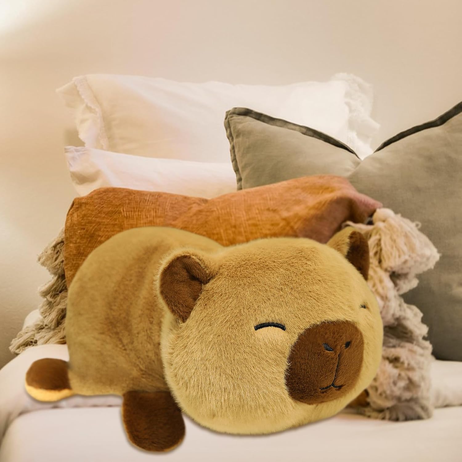 Regalo Festivo: Celebra compleanni, Natale e Capodanno regalando questo adorabile peluche di capibara a familiari, partner o amici, trasmettendo emozioni e gesti premurosi per occasioni speciali Arredamento Incantevole: Un peluche capibara adorabile che unisce design multifunzionale e appeal decorativo. Aggiunge carattere agli spazi domestici, risultando un complemento d'arredo caldo e invitante per case moderne e tradizionali. Qualità del Tessuto: La superficie in velluto fine garantisce una piacevole sensazione epidermica, abbinata a ovatta PP iperelastica che preserva la forma originale e dona comfort persistente, ideale per tutto il giorno Calore Abitativo:per camere da letto e soggiorni, il peluche capibara infonde tenerezza anche in camerette e zone bimbi. La texture soffice e la forma accattivante si fondono armoniosamente negli interni, donando un tocco di calore e personalità. Transformazione Versatile: Design ribaltabile creativo che si trasforma da simpatico capibara in un'ape adorabile, offrendo due stili deliziosi per presentare o decorare ogni occasione con semplicità e fascino duraturo