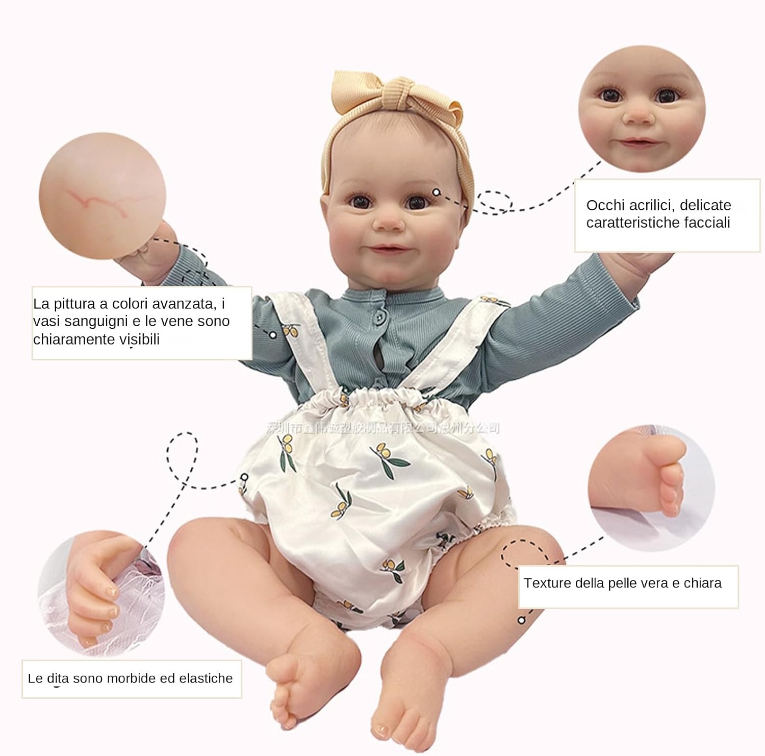 Morbido ed Elastico: Vivete l'esperienza di un realistico e vivido come quello di un bambino reale con questa , realizzata in silicone morbido ed elastico. Questo materiale di silicone è progettato per essere soffice e flessibile, ideale per sessioni prolungate di abbracci e attività di gioco. Offre una sensazione tattile intensa e realistica, perfetta per esprimere emozioni e creare ricordi preziosi attraverso il con. La in silicone ecologico è adat Articolazioni Posabili: Con le sue articolazioni flessibili, questa bambino può essere posizionata in varie , rendendo l'esperienza interattiva più diversificata. Sia che sia sdraiata, seduta o tenuta in braccio, la bambola aumenta il realismo grazie alla capacità di assumere pose fluide e naturali, migliorando l'immersività nel gioco. Aspetto Realistico e Coinvolgente: Con un'attenzione ai dettagli senza precedenti, la nostra imita l'aspetto e la sensazione tattile di bebè reali. Le vivide espressioni facciali, la texture della pelle e i dettagli corporei sono abilmente realizzati, offrendo un realismo che coinvolge i sensi e si distingue per la sua accuratezza, adatto a chi desidera un prodotto che sembri . Coltiva Empatia e Compassione: Come compagno emotivo, questa toddler allevia lo stress e porta comfort, mentre favorisce la consapevolezza dei bambini nel curare gli altri. Promuove attivamente lo sviluppo di empatia e compassione attraverso interazioni giocose e rassicuranti, contribuendo a costruire una base per relazioni e una crescita emotiva armoniosa. Il prodotto è realizzato per offrire un'esperienza coinvolgente e educativa. Collezione Completa: Dotata di vestiti e squisiti, questa toddler aumenta la carineria, migliorando le interazioni e rendendo il processo di cura più coinvolgente. Ideale per imparare abilità di vita di base, la collezione completa con offre tutto il necessario per un gioco realistico. Favorisce lo sviluppo di competenze pratiche attraverso l'interazione con la bambola e i suoi , rendendo l'esperienza di cura piacevole e educativa per la bambola r