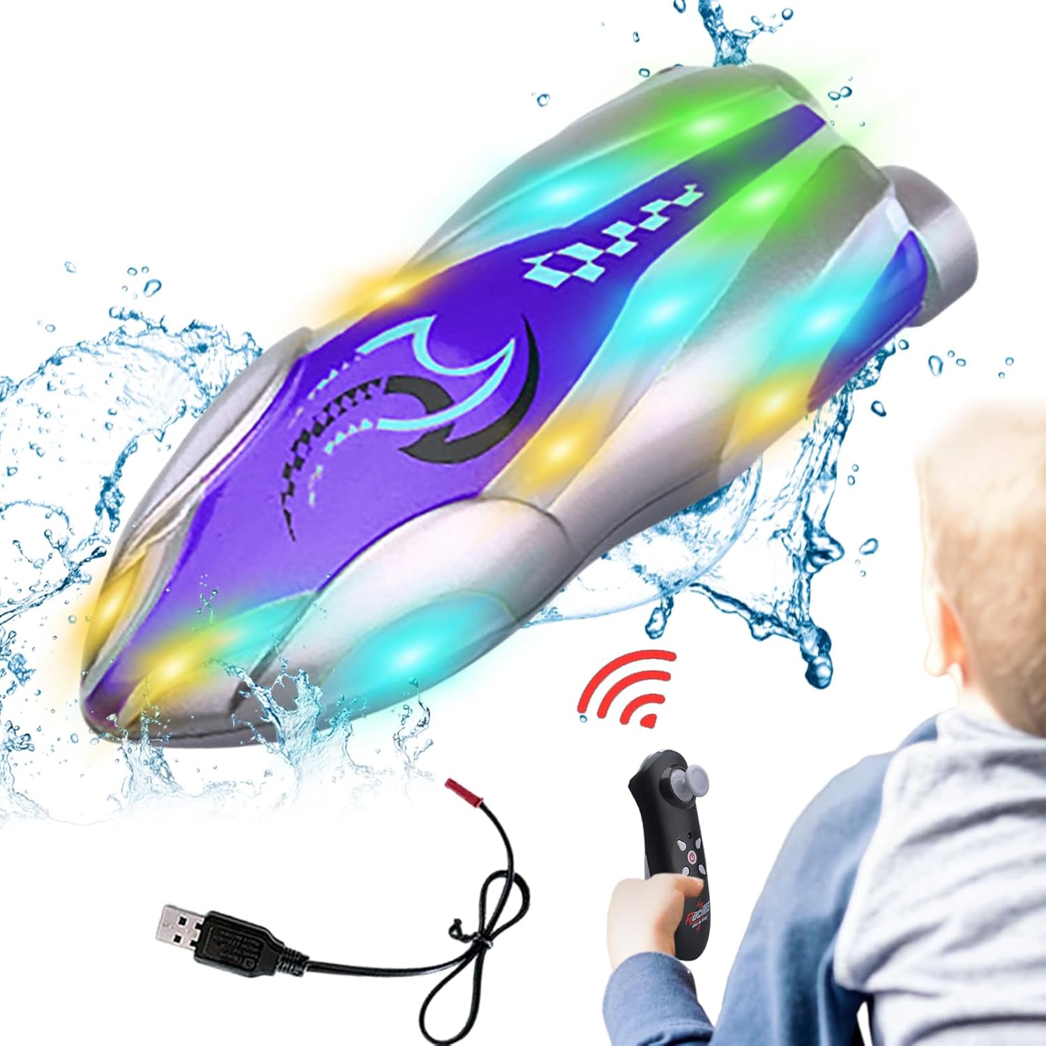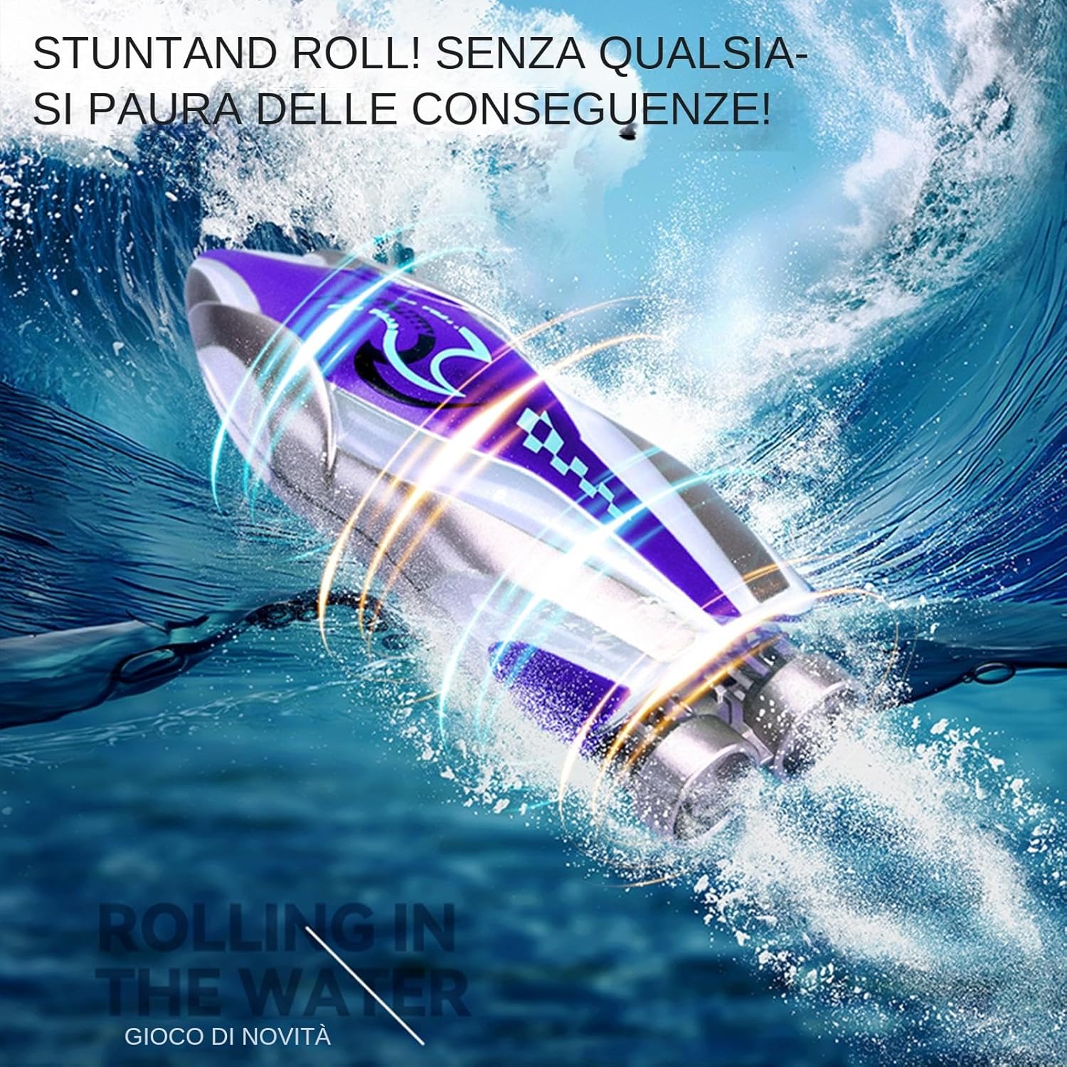 Divertimento con rollio in avanti: mostra le tue acrobazie con la nostra barca telecomandata dotata di rollio in avanti e capacità di rotazione verticale a 360°. Goditi un'esperienza di gioco esaltante e dinamica come mai prima d'ora. Visibilità notturna migliorata: goditi la facile identificazione delle barche e una migliore visibilità con fantastiche luci a LED. Garantisci la sicurezza anche in ambienti bui aggiungendo entusiasmo alle tue pedalate. Velocità elevata: sfrutta la potenza della doppia e del design a doppio motore con un significativo aumento della potenza, offrendo un'esperienza di controllo senza precedenti e un'incredibile velocità sull'acqua per la tua barca telecomandata. Divertimento durante il bagnetto senza sforzo: offrendo un divertimento senza sforzo, questo design compatto è per vasche da bagno interne e piscine per bambini, garantendo un di gioco sicuro e divertente che li intratterrà per ore. Regalo pratico: dona alle persone care il 'eccitazione con questa barca telecomandata, un regalo pratico e premuroso che e benedizioni, per le vacanze o le sorprese quotidiane.