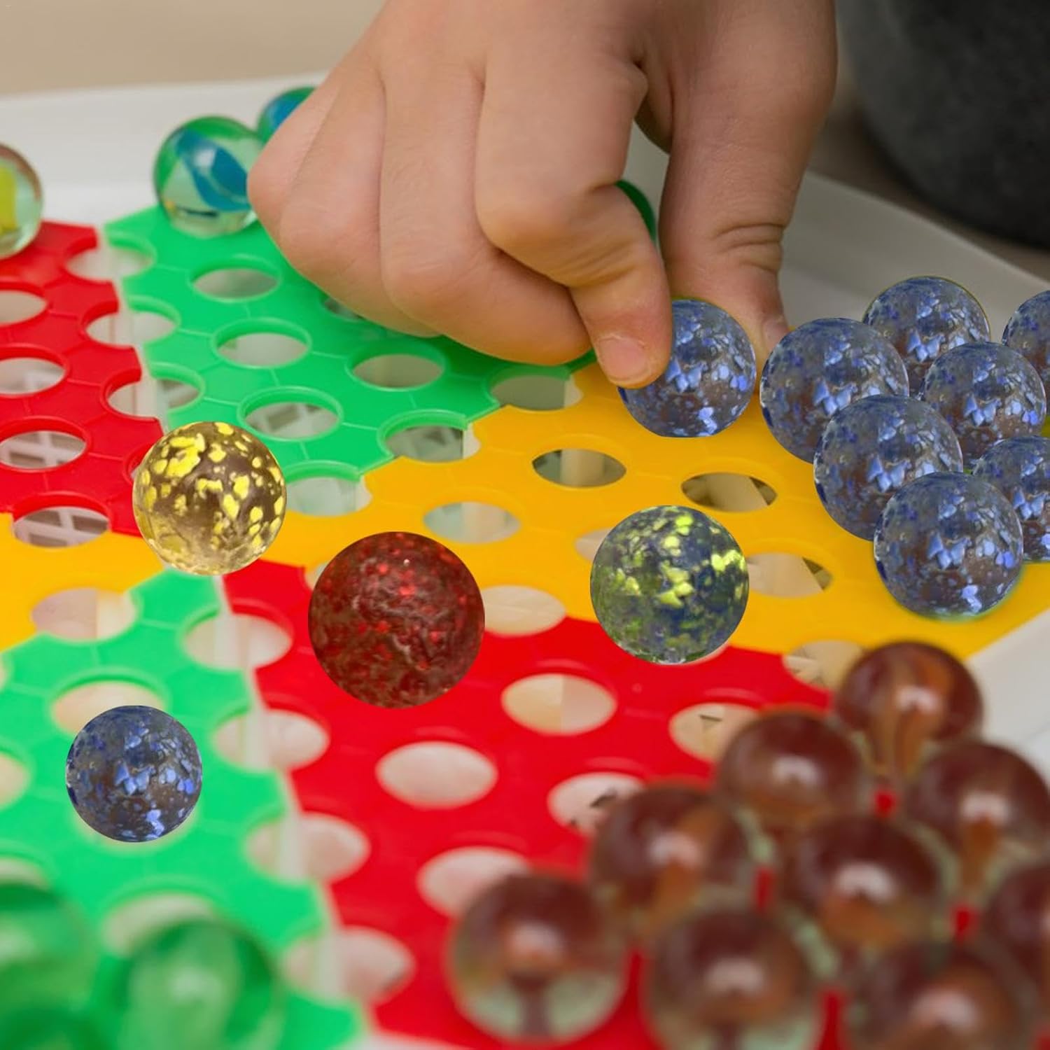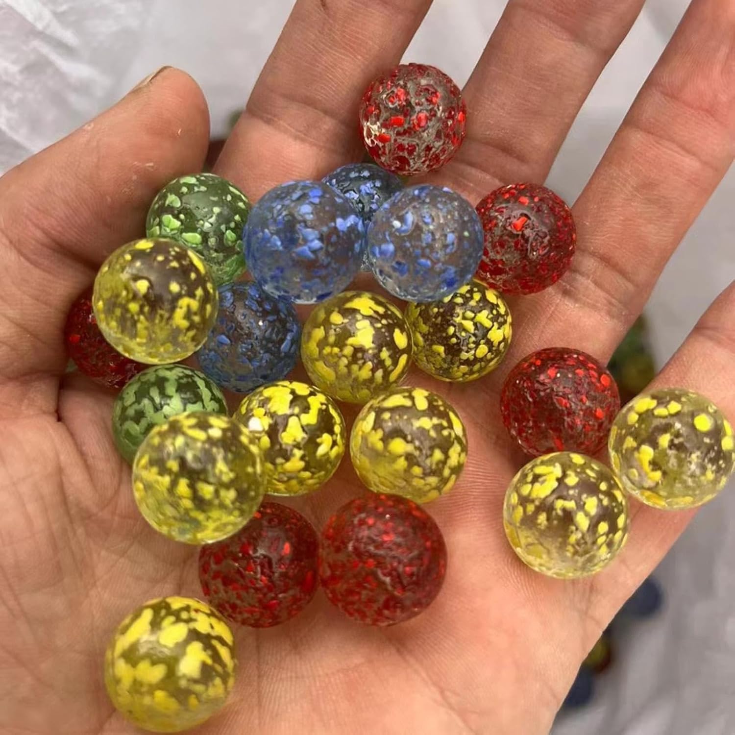 Servizio duraturo: le biglie di vetro colorate e di alta qualità sono realizzate con cura e precisione. Ogni biglia è accuratamente lucidata per ottenere una finitura lucida, rendendola adatta sia a scopi decorativi che a giochi. Divertimento decorativo: concediti la bellezza dell'infanzia con la biglia di vetro colorata. Perfetto per gli appassionati di scacchi e gli amanti delle gare di biglie. Vivi momenti nostalgici con stile e aggiungi un tocco di glamour come decorazione domestica unica o giocattolo versatile per tutte le età. Squisitamente realizzato: con la sua lavorazione artigianale sofisticata e il design unico, il marmo di vetro colorato è la scelta ideale per chiunque voglia esprimere il proprio gusto sofisticato attraverso un artigianato squisito. Ogni marmo fatto a mano presenta un motivo intricato e un affascinante mix di colori vivaci. Decorazione ricca: applicabile a giochi, acquari, stanze, giardini e altre scene di varie scene. Queste biglie di vetro colorate aggiungono un tocco di colore brillante alla tua stanza con i loro colori vivaci e la loro lucentezza unica e fungono da decorazione multifunzionale. Facile da trasportare: le biglie di vetro colorate ti offrono più ore di divertimento con le biglie. Amerai il loro design compatto e facile da trasportare, che li rende perfetti per viaggi all'aperto e riunioni di famiglia