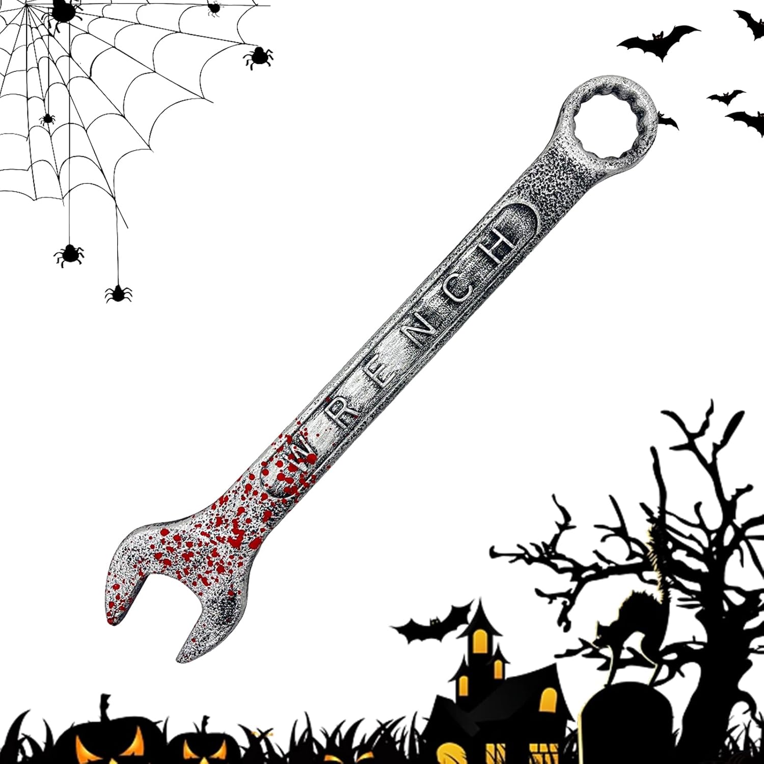 and reusable for multiple events and decorations: Built to last through multiple Halloweens or escape room uses, red paint the paint and shape stay intact to keep the scary effect alive year after year Lightweight and safe design for easy carrying and role-playing fun: Made from soft, materials to prevent injury during costume use, pranks, or playful horror scenarios, making it safe for teens and adults alike Perfect for haunted houses, escape rooms, and spooky photo shoots: Ideal for immersive environments and terrifying setups, this prop wrench elevates the fright factor and gets attention in horror-themed events or horror cosplay Ideal costume accessory for horror-themed characters and mischief makers: Complete your look as a zombie mechanic, mad scientist, or haunted handyman with this bloodied tool—great for Halloween, cosplay, or themed parties Realistic fake wrench prop with blood splatter effect adds horror : Designed to mimic a heavy-duty spanner drenched in blood, it enhances scary scenes, Halloween parties, or theatrical performances with creepy realism