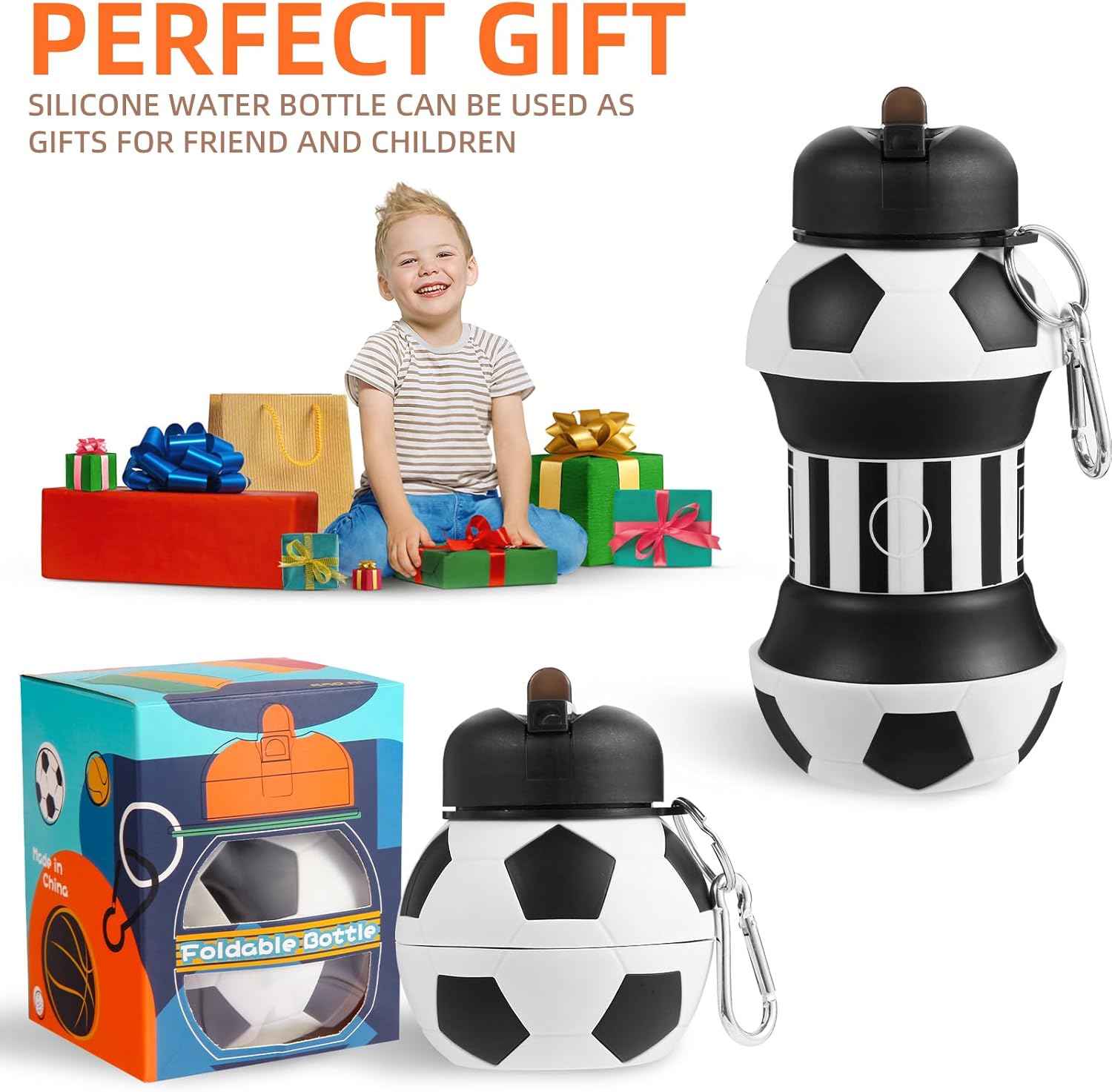 Sicura e sana: realizzato in silicone senza BPA, ipoallergenico e inodore per bere in sicurezza Facile da usare: design comprimibile con accesso alle bevande con 1 clic Antiurto e anti-perdita: la struttura in silicone resistente previene fuoriuscite e rotture Dimensioni portatili: design pieghevole leggero per un facile trasporto Elegante e versatile: un regalo fantastico per giocatori e squadre di calcio