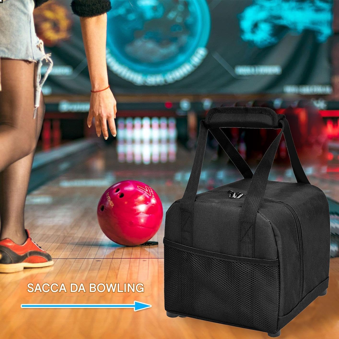 Affidabilità Prolungata: Realizzato con robusto tessuto Oxford e cuciture rinforzate, resiste a strappi e carichi pesanti mantenendo inalterata la qualità nel Gestione Intelligente: Include tasche mesh laterali e zona centrale capiente per custodire palla da bowling, asciugamani, bottiglie e equipaggiamento. Soluzione pratica per appassionati Movimento Semplice: Anelli e fibbie per accessori, maniglie imbottite e cintura regolabile per manico telescopico ottimizzano l'usabilità. Garantiscono comfort e facilità di trasporto per le esigenze del bowling. Maneggevolezza Ottimale: Integrando un design ergonomico e peso ridotto, questa borsa per bowling garantisce trasporto agevole con maniglioni rinforzati. La fibbia ad apertura singola consente accesso rapido, mentre le dimensioni compatte (40x35x35 cm) ottimizzano lo stoccaggio in armadietti e bagagliai senza sforzo. Fissaggio Sicuro: La struttura in schiuma assorbe gli urti, tiene i birilli nella loro posizione e ne previene i grazie al supporto interno durante il trasporto o il riposo.