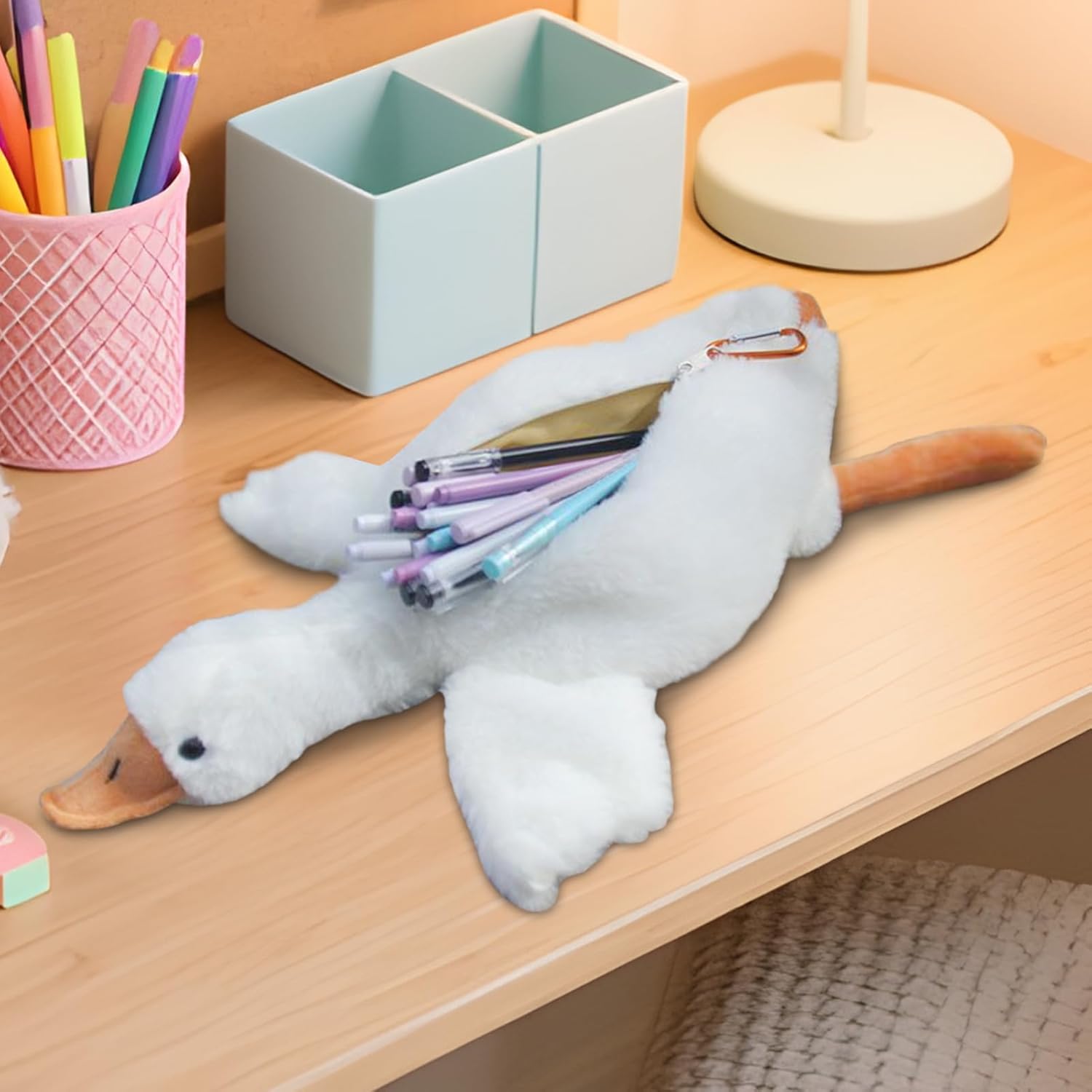 Design Cartoon: Questo astuccio in peluche mostra un delizioso design animale cartoon, offrendo una sensazione morbida al e migliorando il piacere della scrittura quotidiana come accessorio di cancelleria coinvolgente Organizzazione Ottimale: Astuccio capiente con ampio spazio interno che organizza in modo efficiente penne, matite e vari accessori scolastici, mantenendo tutto il materiale ordinato e facilmente accessibile per un uso quotidiano pratico e immediato Design Resistente e Autopulente: Focalizzato sulla praticità di pulizia, utilizza morbido peluche e struttura robusta che garantisce lunga durata, resistenza all'usura e funzionamento scorrevole in ogni utilizzo Compagno di Scrivania Incantevole: Accessorio da scrivania delizioso per amanti animali, garantisce praticità come regalo accessorio funzionale mantenendo valore come articolo di cartoleria prezioso e soluzione organizzativa efficiente Organizzatore Multifunzione: Astuccio pratico e versatile per studio o lavoro, ideale per mantenere matite e accessori da scrittura perfettamente ordinati. Soluzione perfetta anche per organizzare forniture artistiche, garantendo massima praticità e facilità di accesso.