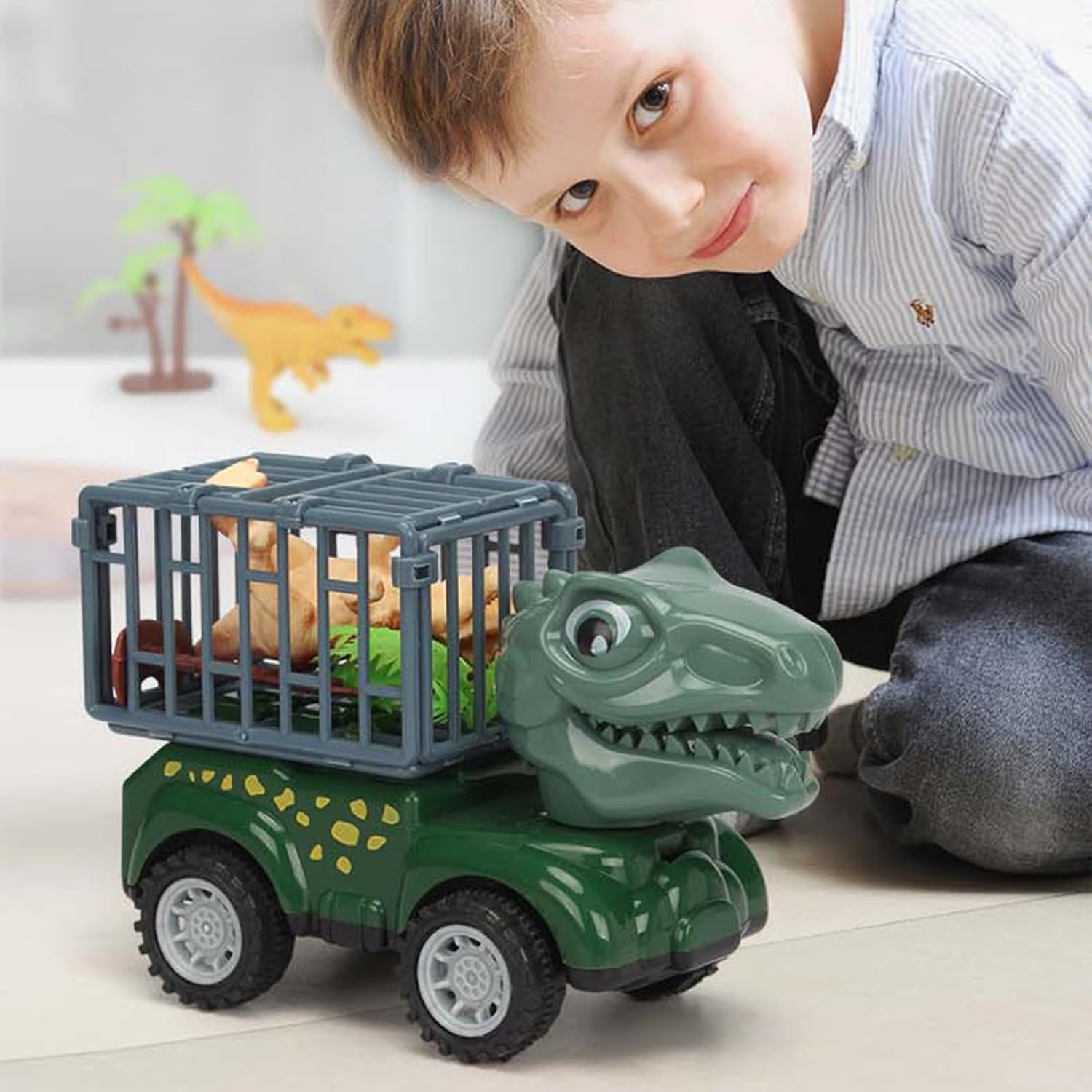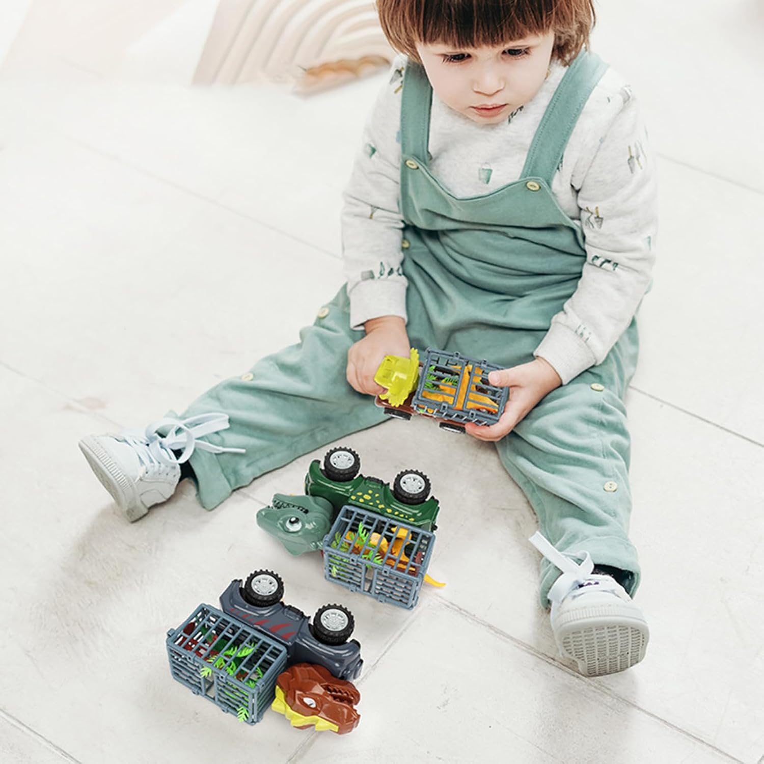 Giochi Dinosauri Mini: Set da 4 veicoli unisce camion da costruzione e dinosauri giocattolo in un playset, creando un'esperienza di gioco coinvolgente e creativa per bambini appassionati Veicoli ad Inerzia: Divertimento senza batterie grazie ai camioncini dei dinosauri mossi da meccanismo a inerzia, ideali per inventare storie fantastiche e giochi appassionanti per bambini piccoli Giochi Apprendimento Interattivi: Incoraggia la curiosità con attività ludiche interattive, migliorando sviluppo cognitivo, gioco e affinamento della motricità fine, grazie alle funzioni del giocattolo in un contesto preistorico immaginativo Difficile da Rompere: Prodotto con materiali ecologici, priorizza sicurezza e durata garantendo un ambiente di gioco sicuro per bambini oltre i 2 anni Regalo Indimenticabile: Originale combinazione di camion giocattolo e mondo preistorico per piccoli avventurieri. Regalo unisex per compleanni o festività che potenzia l'immaginazione con giochi dinamici ed educativi.