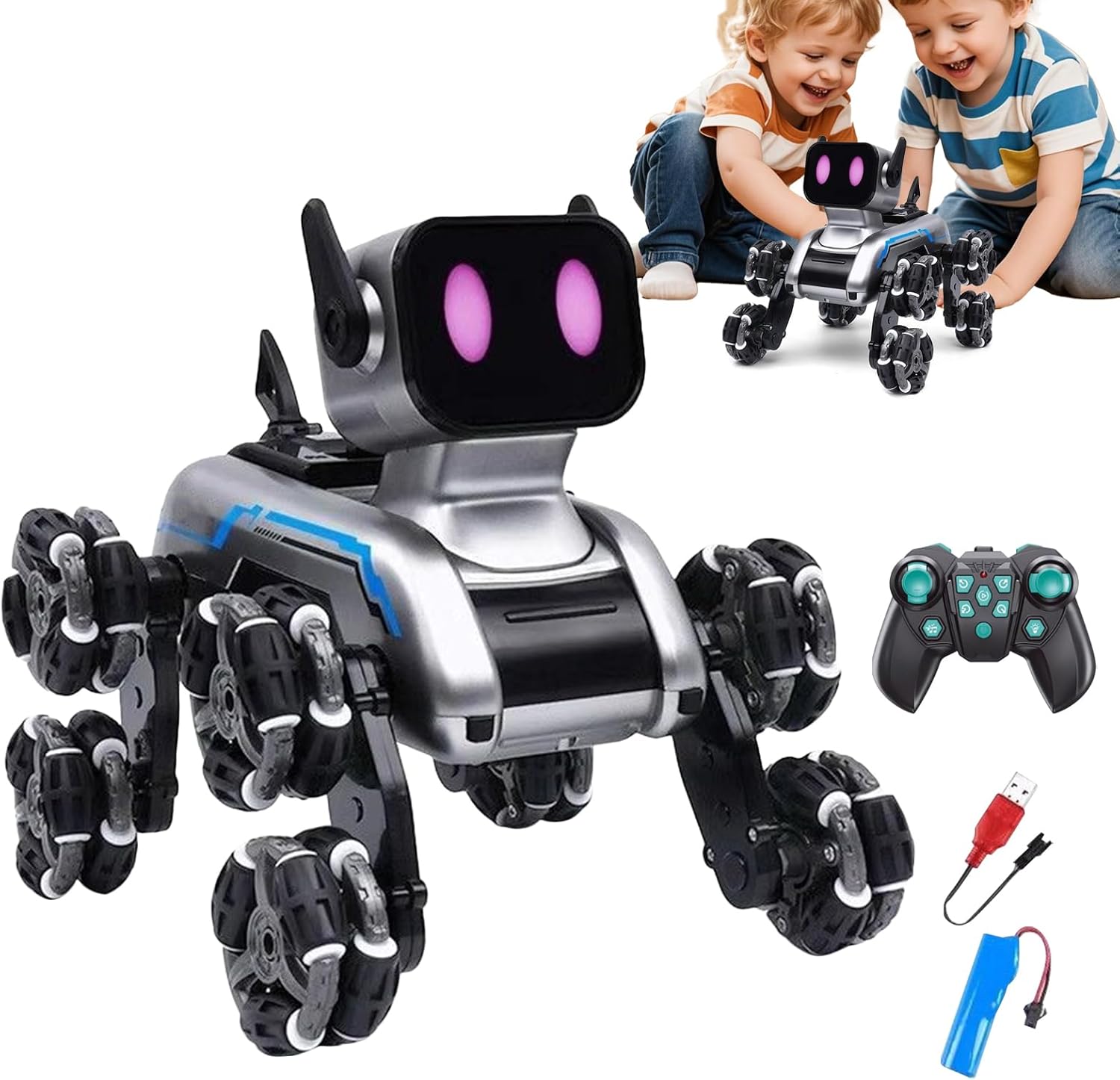 Prevenzione Collisioni: Costruzione angolare arrotondata con modulo antiurto intelligente priorizza la sicurezza nell'addestramento ludico Movimento Realistico: Meccanica avanzata riproduce fedelmente comportamenti canini naturali, aumentando coinvolgimento e divertimento durante il gioco interattivo con movimento fluido e gesti autentici Intrattenimento Garantito: Progettato come regalo per compleanni e ricorrenze. Tiene i bambini impegnati con design interattivo durante eventi, creando momenti indimenticabili senza sforzo. Interazione Reattiva: Tecnologia gestuale innovativa per un funzionamento semplificato con movimenti manuali basilari, aumentando il coinvolgimento dei bambini e il divertimento nella scoperta con sensori reattivi Stabilità 8 Ruote: Meccanismo di trazione avanzato a 8 punti di contatto offre stabilità costante e adattamento dinamico a diverse superfici senza rischio di capovolgimenti.