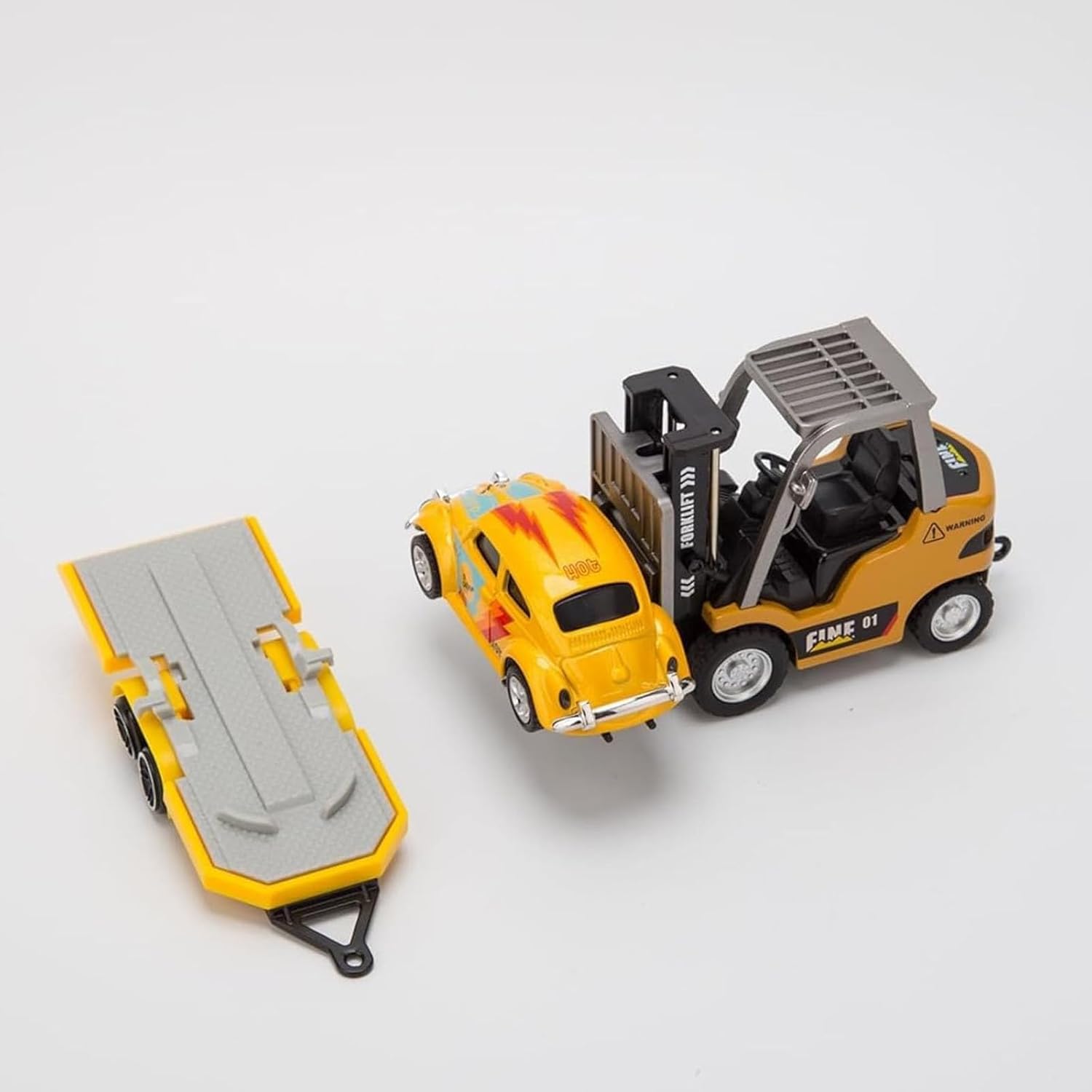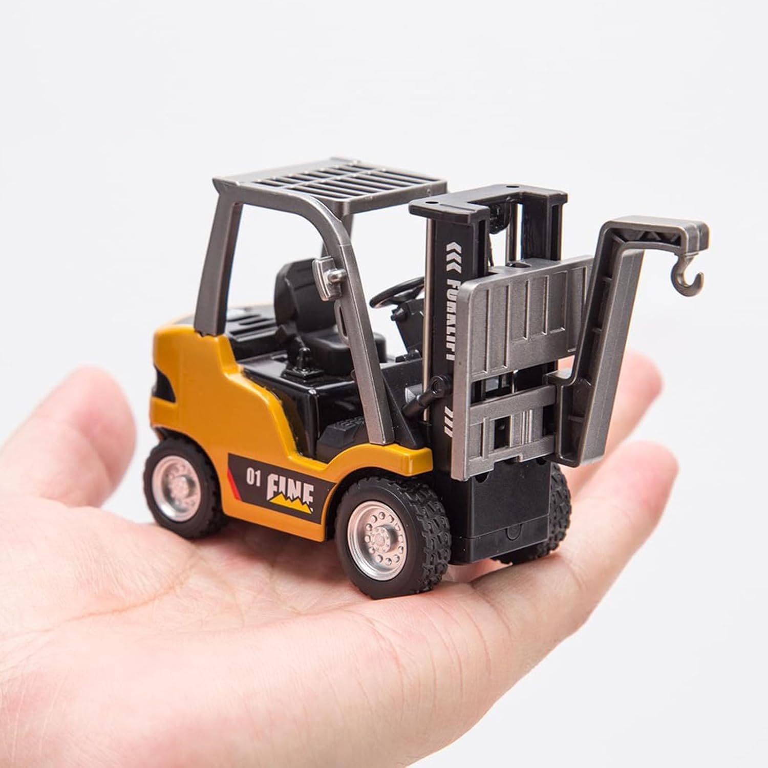[Mini carrello elevatore RC in lega in scala 1/64]: Modello da tavolo in scala 1:64 altamente dettagliato. La struttura in lega di zinco e ABS garantisce la durata nel tempo. Caratterizzato da un design realistico e un funzionamento fluido. [Smartphone e telecomando]: Funziona tramite il telecomando wireless 2,4 GHz incluso o l'app per smartphone (app richiesta). Controllo proporzionale completo per una sterzata e una guida precise. [Albero di sollevamento funzionante e accessori]: Alza/abbassa a distanza l'albero funzionale. Include forche, gancio di carico e pallet per un gioco realistico di carico/scarico. Pronto all'uso. [Pacchetto completo]: La confezione include 1 mini carrello elevatore in lega, 1 mini telecomando, 1 cavo di ricarica, 1 gancio di carico, 2 forche di carico, 1 pallet e un manuale di istruzioni per una facile configurazione. [Regalo in miniatura ideale]: perfetto oggetto da collezione o regalo per gli appassionati di RC e veicoli. Dimensioni compatte (11x7x4 cm) per uso interno/esterno. Stimola l'immaginazione e l'avventura.