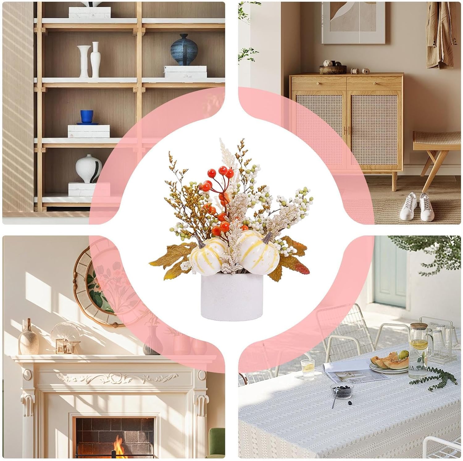 Centrotavola Elegante Autunno: Questo centrotavola in stile autunnale opaco offre un upgrade alla tua tavola attraverso una display elegante, unendo colori tenui e dettagli tattili per un tocco stagionale stylish ma accessibile che ispira calore e sofisticatezza in ogni occasione Decorazioni Resistenti Sbiadimento: Aggiorna la tua tavola con decorazioni autunnali di lunga durata, realizzate per conservare il loro fascino e funzionalità per molte stagioni festive a venire Design che Aumenta la Profondità: Caratterizzato da una sfumatura di colore, questo centrotavola crea un arrangiamento artistico interno con appeal decorativo autunnale 3D. Le zucche stratificate arricchiscono la profondità e si abbinano a qualsiasi ambiente festivo, dalla tavola al caminetto. Ingresso Accogliente: Amplifica l'impatto del tuo ingresso con centrotavola trasformabili in decorazioni murali stagionali, perfetti per creare un'atmosfera autunnale armoniosa che dialoga con altri elementi decorativi della casa Tema Decorativo Autunnale: Migliora i tuoi spazi con arrangiamenti versatili perfetti per la tavola del Ringraziamento e adatti a molte occasioni, ottimi per celebrare il fascino stagionale in ambienti domestici festivi