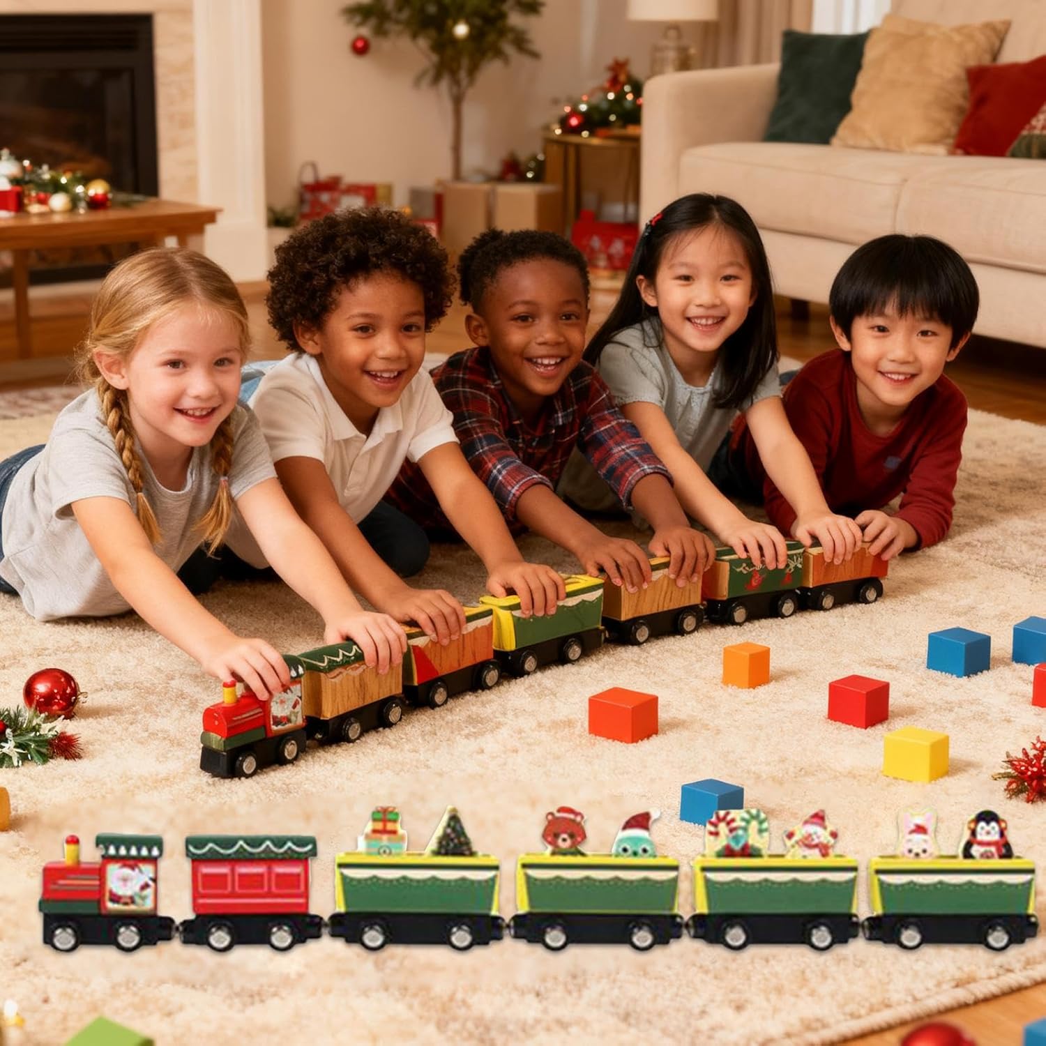 Charming Wooden Christmas Train: Crafted from high-quality wood with bright festive colors, creating a delightful Christmas centerpiece that doubles as both decoration and fun playtime toy for kids Educational & Creative Play: Encourages imagination, hand-eye coordination, and storytelling while kids assemble or play, helping them develop fine motor skills through engaging festive fun Durable Craftsmanship: Made with smooth, splinter-free wood and safe, paint that’s perfect for children—designed to withstand daily play and become a cherished holiday keepsake Perfect Holiday Decoration: Adds a classic festive touch to your living room, bedroom, or study—display it on shelves, mantels, or tables for a warm and joyful Christmas atmosphere for All Ages: A wonderful Christmas present or collectible for kids, families, or train lovers—great for party favors, holiday activities, or creating treasured winter memories together