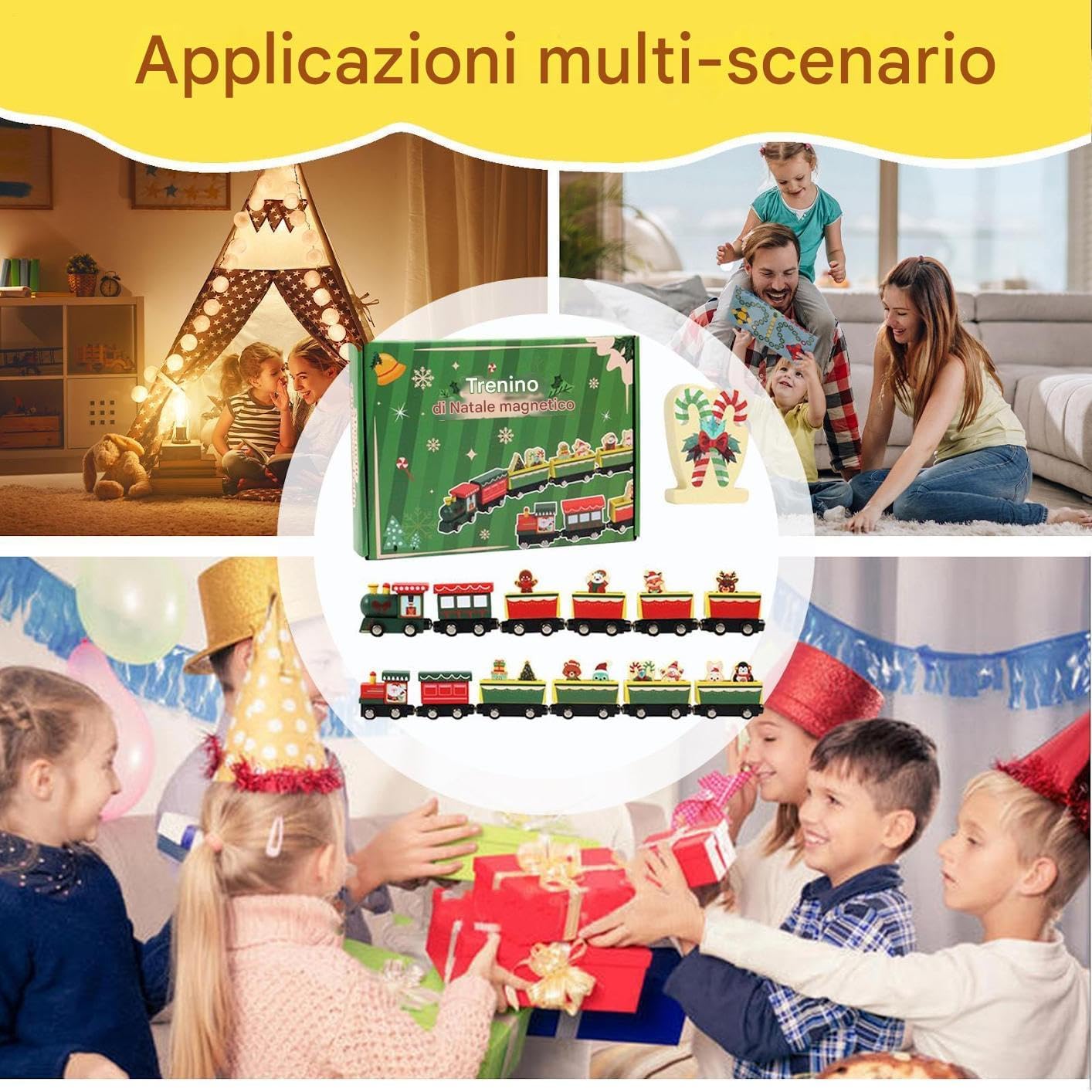 Festive Wooden Christmas Train: Crafted from high-quality wood with charming holiday designs, creating a delightful decoration for the living room, bedroom, study, or display shelves while adding festive cheer to the home during Christmas and winter celebrations Educational and Interactive Toy: Encourages hands-on learning, creativity, and fine motor skill development for children, allowing boys and girls to explore imaginative play while understanding train structures, sequences, and spatial coordination Perfect for Kids and Collectors: Suitable for children of all ages and train collectors alike, offering a fun, engaging, and visually appealing toy or display piece that enhances holiday decorations and sparks joy for the entire family Safe and Durable Materials: Made from , sturdy wood that withstands repeated use while ensuring safe play for kids, providing a long-lasting and reliable holiday toy and decorative piece for indoor home environments and Family Activity: Serves as a thoughtful holiday gift, educational tool, or family bonding activity, perfect for parties, winter celebrations, or Christmas-themed events, creating memorable experiences and interactive fun for children and adults