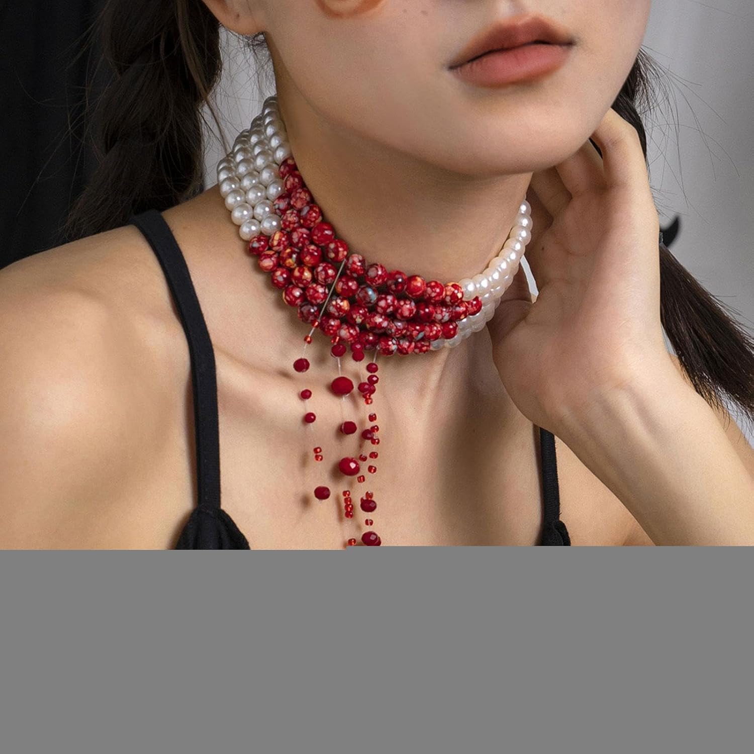 Generico Collare Stile Sangue Colante,Collane Per Halloween a Strati Multipli con Perle | Accessorio Multistrato Per Costume Gioco Di Ruolo Cosplay