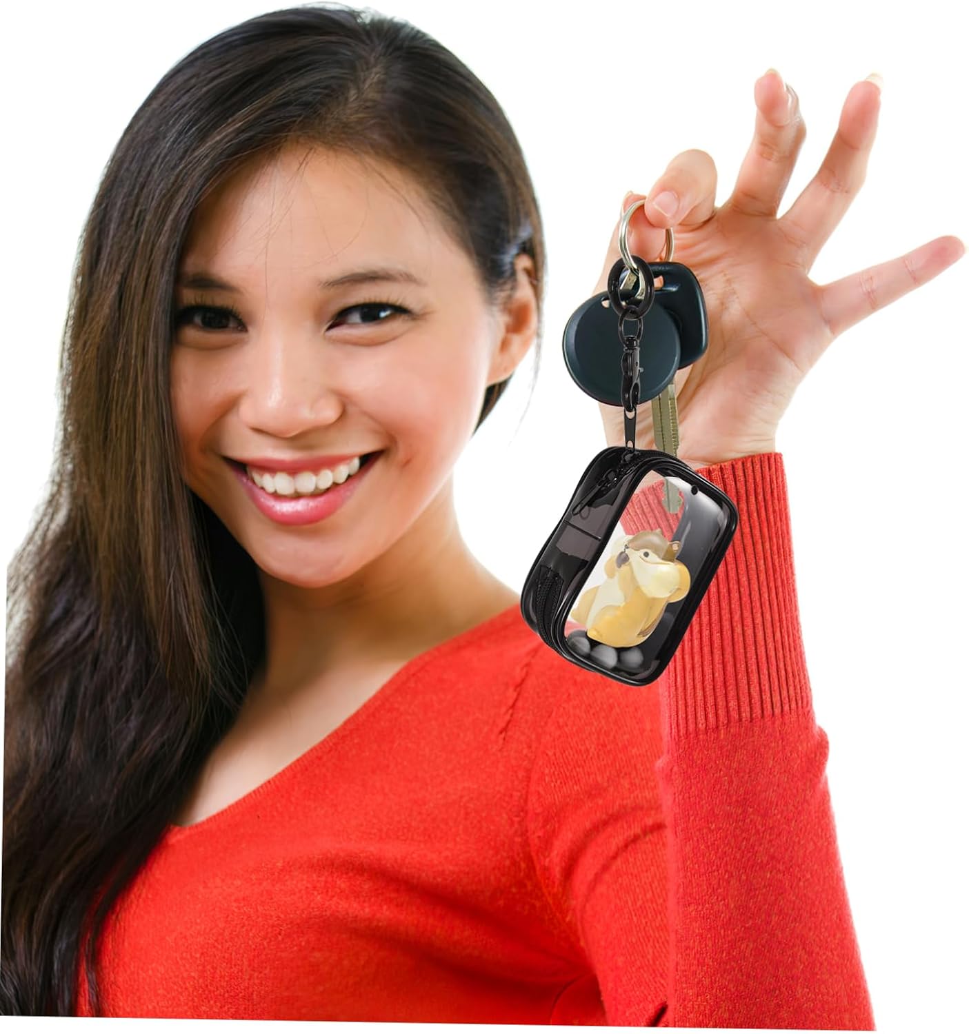 Mini borsa trasparente - Questa borsa da esposizione offre una protezione completa per le tue collezioni o bambole da macchie o danni, Mini borsa portachiavi trasparente con borsa trasparente per esposizione di figure - Design altamente trasparente per una piacevole esperienza di apprezzamento, pratica da usare, Piccola borsa trasparente con pompon pendente - Lavorazione meravigliosa, lucidatura liscia, molteplici funzioni di archiviazione, pratica e facile da usare, Mini borse portaoggetti portatili Borsa trasparente con cartoni animati - La borsa trasparente per figure presenta un design con cerniera liscia, facile da aprire e chiudere, comoda da trasportare ed è una borsa trasparente per esposizione di figure con portachiavi - protezione ed esporre le tue collezioni preferite, ideale per esporre action figure, modelli, gioielli, oggetti da collezione ecc., mini borsa trasparente