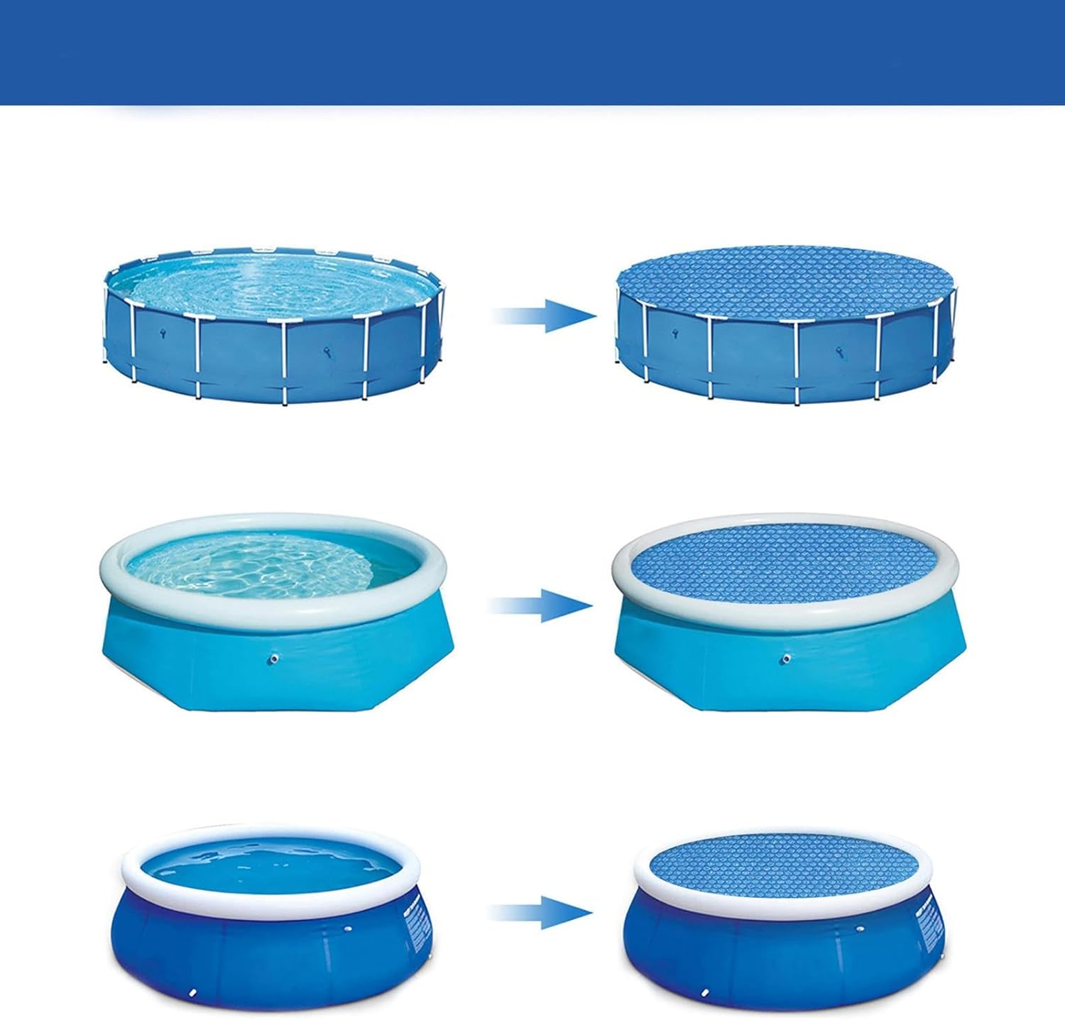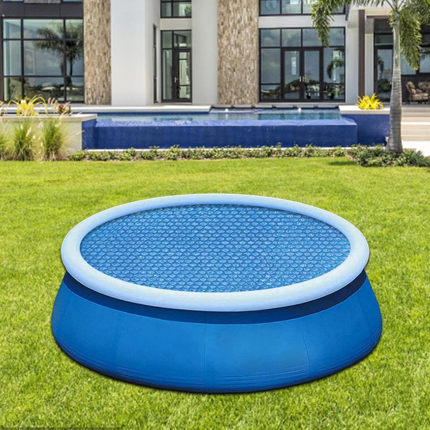 Ben realizzato: la copertura solare della piscina è realizzata in materiale per pellicola a bolle PE, che è a prova di sole, resistente all'usura e resistente, ed è molto adatto come copertura protettiva per la piscina. Averti per lo spreco d'acqua: questa copertura della piscina può aiutarti a ridurre l'evaporazione 'acqua della piscina del 95%, permettendoti di evitare di riempire la piscina ogni volta che nuoti e sprechi acqua. Copri semplicemente la tua piscina con questo prodotto quando non stai nuotando. Uso diffuso: per i tetti della piscina, l'isolamento della piscina per esterni funziona perfettamente per mantenere foglie, polvere e altri detriti dalla costruzione in acqua. Inoltre, il film protettivo può aiutare a evitare che l'acqua nella piscina diventasse troppo inquinata. Usa facilmente: a seconda delle dimensioni della piscina, è possibile tagliare il nostro coperchio della piscina solare alle dimensioni di cui hai bisogno; Tuttavia, ciò non influirà sulla capacità del prodotto di proteggere. Design della funzione di isolamento termico: la copertura della piscina solare è costituita da decine di migliaia di bolle d'aria blu che possono bloccare la temperatura della piscina sia in estate che in inverno, nonché blocco di polvere esterna e altri punti di ingresso, rendendola più sicura.