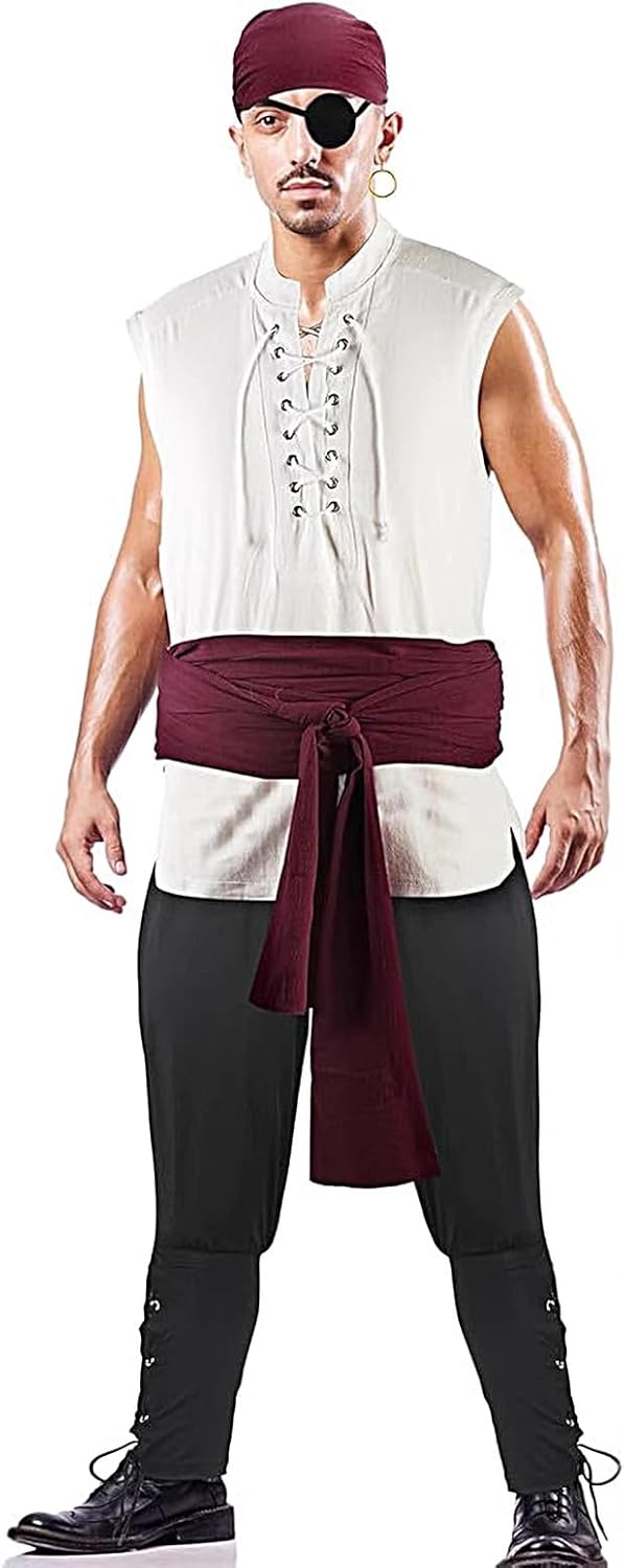 Generico Costume da Pirata per Uomo,Completo Pirata Medievale Uomo - Accessori per Halloween Carnevale Teatro Maschera Festival Eventi per Adulti