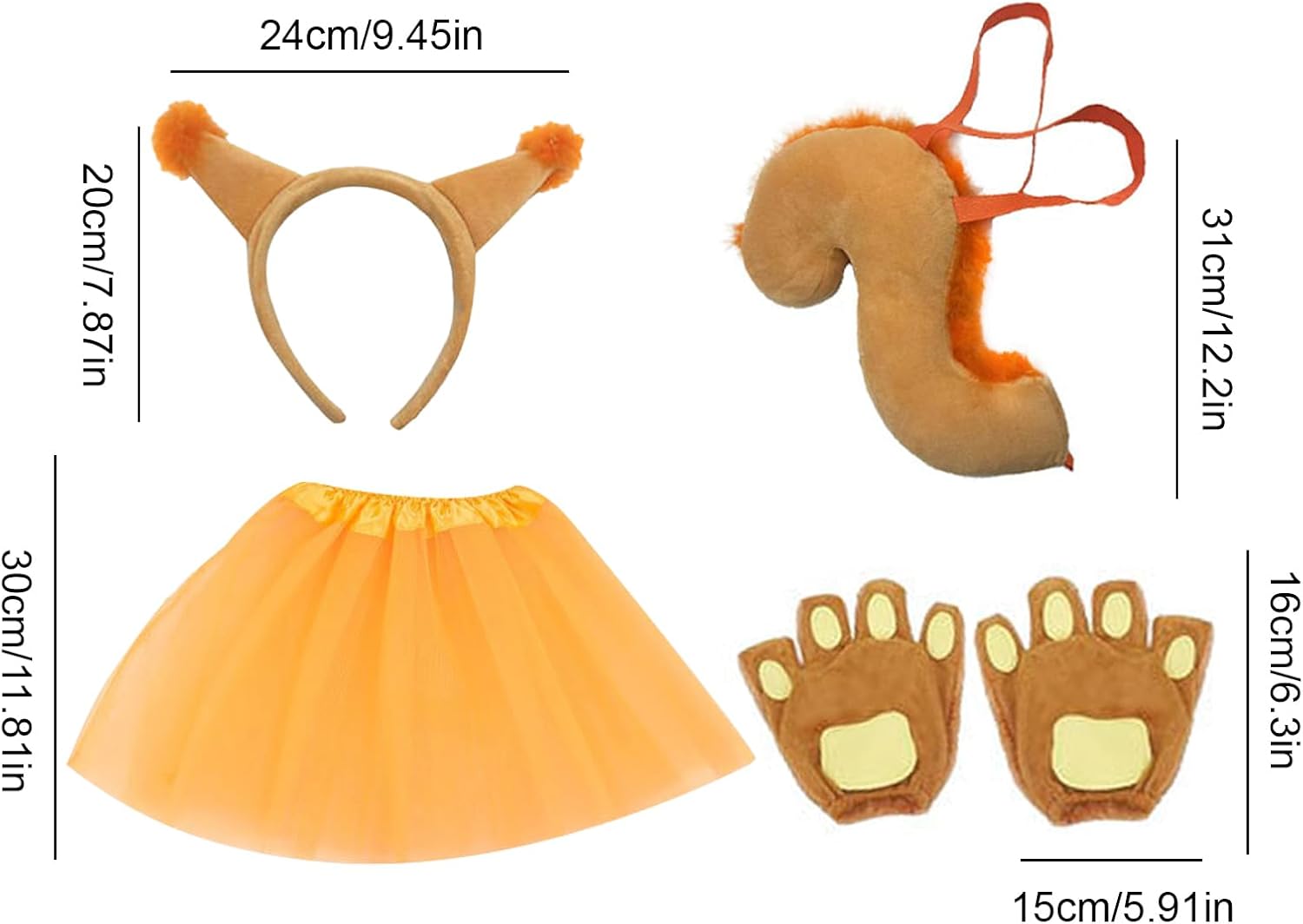 Descrizione prodotto Il Costume con per Capelli Animali presenta un design affascinante di scoiattolo con una fascia per capelli per un aspetto realistico e giocoso. Adatto per accessori da cosplay e forniture per feste, è ideale per eventi come carnevali pasquali, Natale, Halloween, spettacoli teatrali, recite scolastiche e produzioni sceniche. Questo costume con fascia per capelli si adatta a varie occasioni, inclusi festeggiamenti di Carnevale, sessioni fotografiche, compleanni e altro ancora. Amato da cosplayer, attori, bambini e ragazze, aggiunge divertimento a ogni celebrazione garantendo comfort e creatività in ogni utilizzo. Specifiche del prodotto: Nome prodotto: costume da scoiattolo Materiale del prodotto: peluche + poliestere Dimensione del prodotto: Dimensione a coda: circa 31 cm/12,2 pollici Dimensione del guanto: circa 15x16 cm/5.91x6,3 pollici Dimensione a fascia: circa 20x24 cm/7.87x9.45 pollici Dimensione a gonna: circa 30 cm/11,81 pollici Peso del prodotto: circa 330G Lista imballaggio: 1 x balletto tutu 1 x fascia per la testa 'orecchio scoiattolo 1 x coda scoiattolo 1 x papillon da scoiattolo 1 coppia x Paws Nota: A causa e diverse impostazioni di illuminazione e schermo, il colore 'oggetto può essere leggermente diverso dall'immagine. A causa e diverse misurazioni manuali, consentire una differenza di 1-2 cm di dimensioni. Avviso di sicurezza Non applicabile