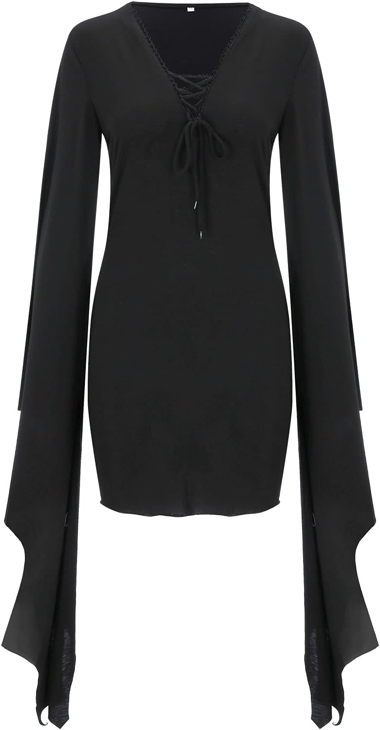 Contenuto della confezione: 1 x mini abito da donna. Si prega di notare che la dimensione qui è la dimensione Asia Note per l'acquisto: Si prega di fare riferimento alla nostra tabella di formato nell'area dell'immagine visualizzata (se non avete idea della tabella di formato, si prega di scegliere una dimensione più grande del solito). Materiale: Materiali selezionati di alta qualità, l'abbigliamento è super morbido, traspirante, comodo da indossare, leggero, squisito artigianato, dandovi la migliore esperienza di indossare CARATTERISTICHE: Questo abito gotico retrò di Halloween con scollo a V e maniche svasate mostra l'eleganza delle donne. e c'è un'allacciatura sulla parte anteriore e posteriore del vestito, che può essere regolata per adattarsi alla tua figura. Il grande design ti rende il centro dell'attenzione! AMPIE APPLICAZIONI: Il costume da strega da donna è ampiamente utilizzato, è possibile utilizzarlo per giocare a vampiri, cavalieri, streghe, maghi, ecc, adatto per il carnevale, Halloween, mascherate, ecc