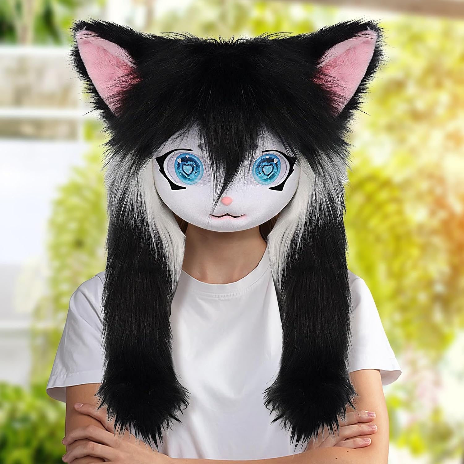Generico Costume Peluche - Testa Completa con Occhi Grandi e Capelli Lunghi,Accessorio Realistico per Costumi Cosplay Teatro Halloween Party Maschere Convention Anime