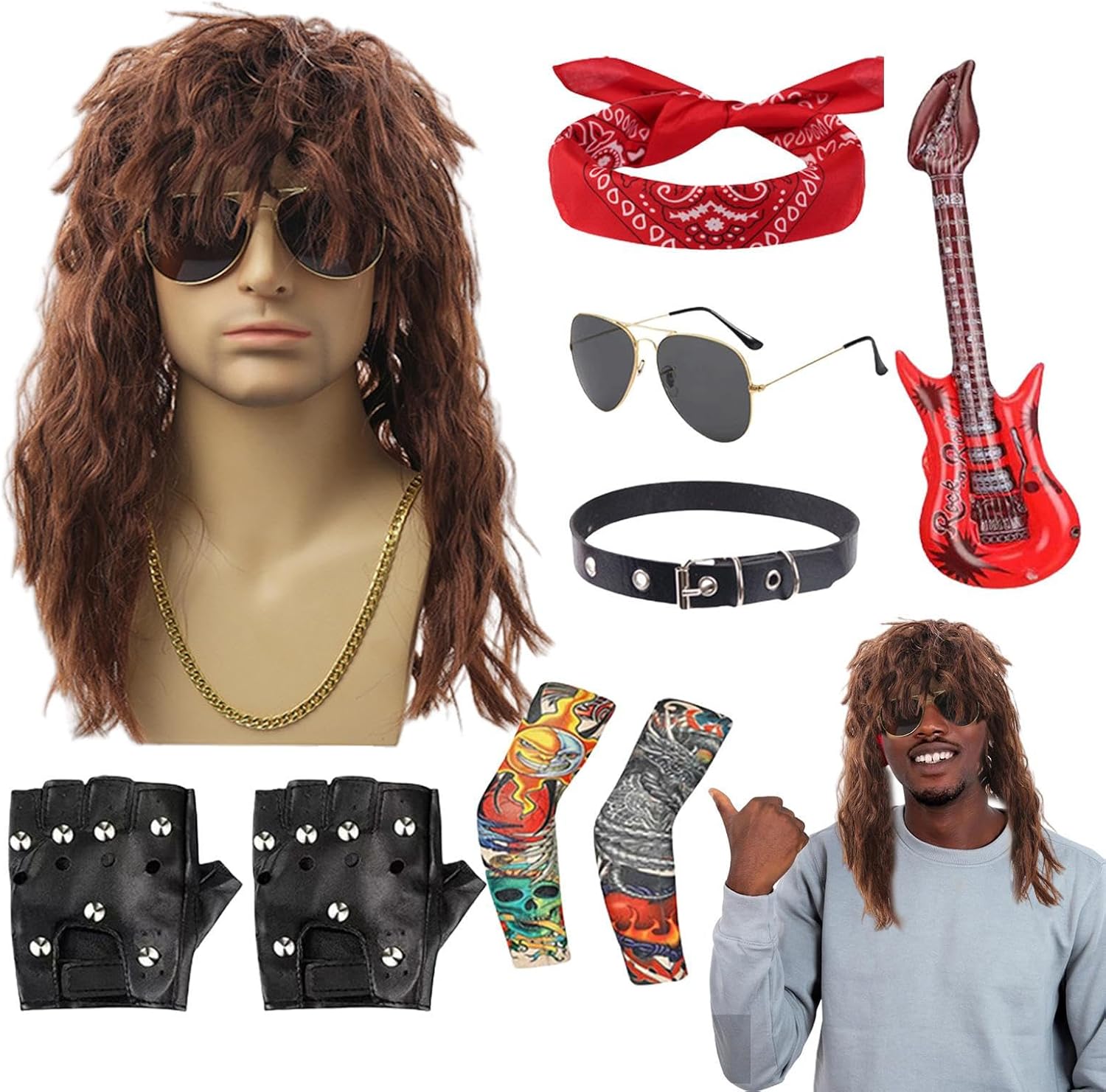 Descrizione prodotto Preparati a scatenare la festa con il nostro costume da rocker anni '80 per uomo! Questo costume include 1 paio di maniche elastiche e una parrucca in PET per emulare il vero spirito degli anni '80. per concerti rock e festival musicali. Materiale: PET+nylon Lunghezza della parrucca: circa 45 cm/17,7 pollici Dimensioni : 38x9 cm/14,9x3,5 pollici Dimensioni della chitarra gonfiabile: circa 93 cm/36,6 pollici Dimensioni dei guanti: 13,5x10 cm/5,3x3,9 pollici Peso: circa 350 g Elenco: 1 parrucca riccia rock 1 fascia per capelli in tessuto 1 paio (2 pezzi) di maniche 1 paio (2 pezzi) di guanti punk 1 paio di occhiali 1 chitarra gonfiabile 1 collare per il collo Avviso di sicurezza Non applicabile